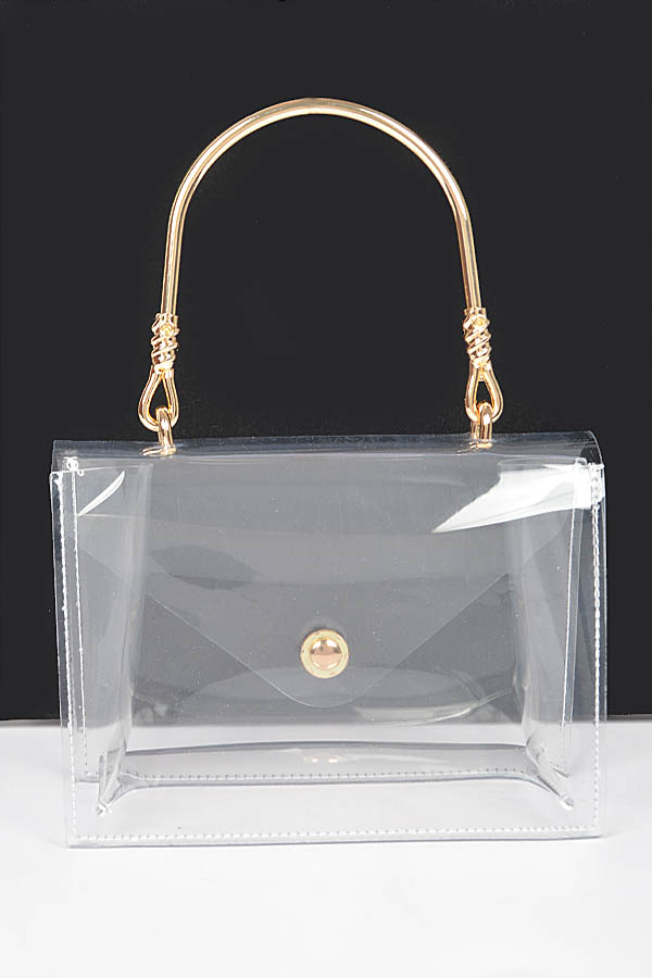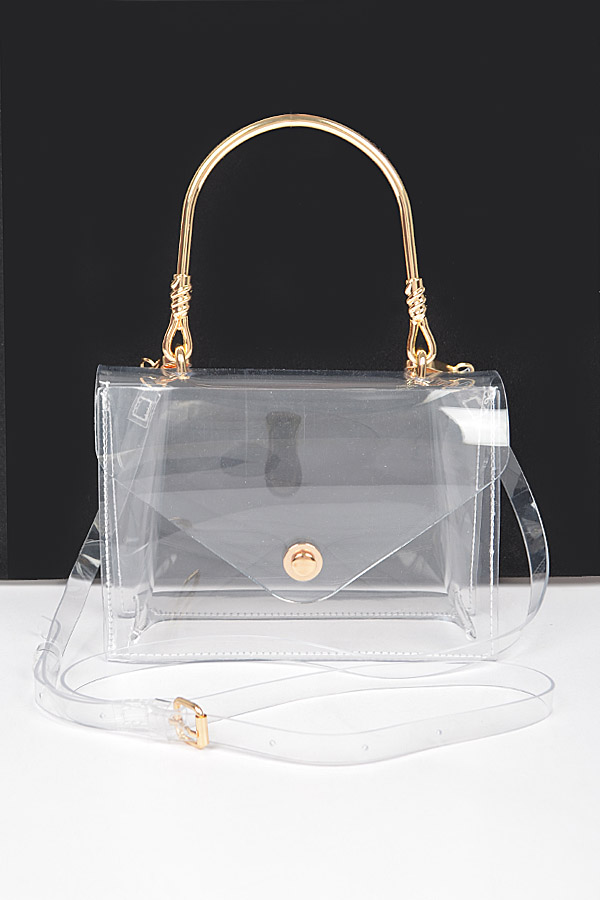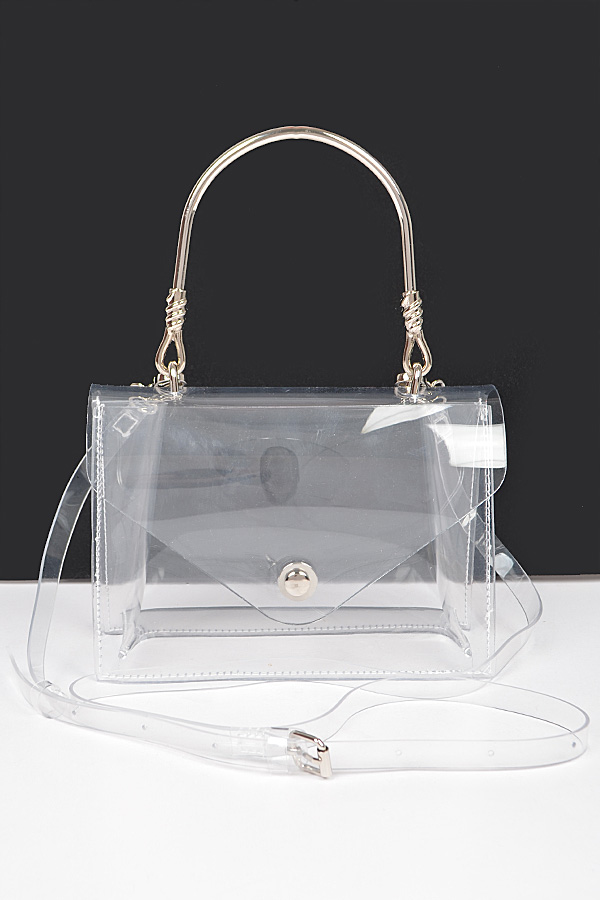 - * Introducing the "GlimmerClutch" – a stunning transparent bag that combines elegance and functionality. With its chic handle and chain, this accessory is perfect for any occasion, allowing you to showcase your style while keeping your essentials secure. Elevate your fashion game with the GlimmerClutch!