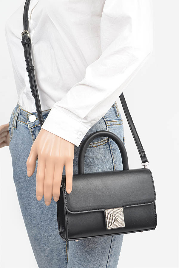 - * Faux Leather Top Handle Bag