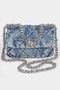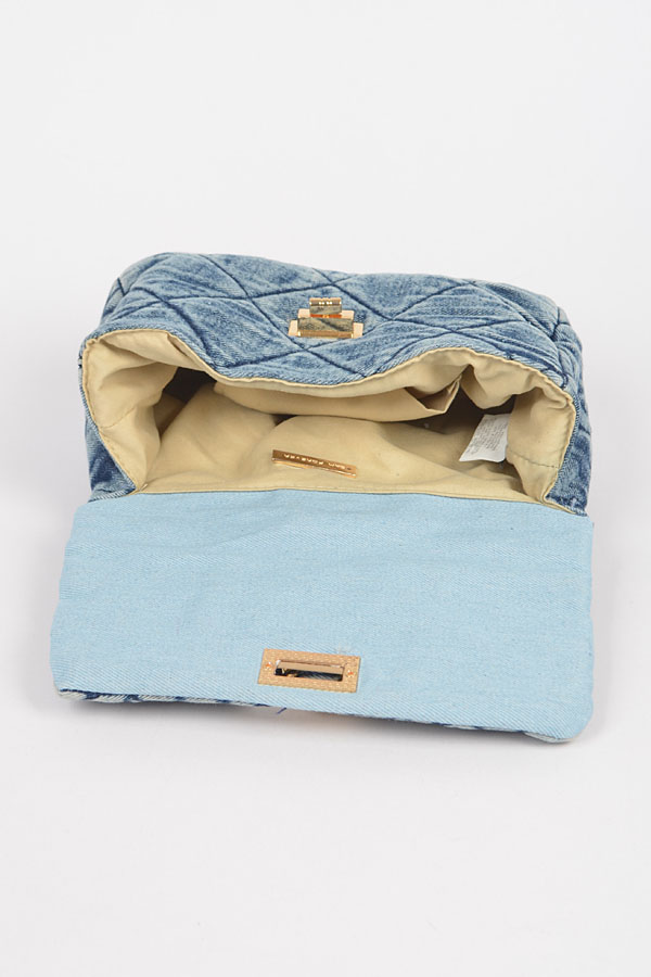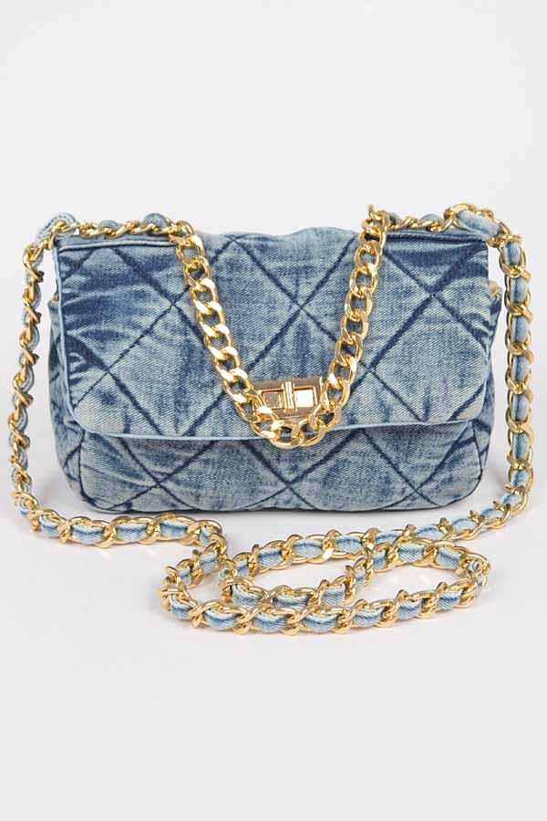 - * Introducing the "Quilted Washed Denim Flap Clutch" from H&D Accessories – a perfect blend of style and functionality. This quilted washed denim bag features a chic chain strap, making it an essential accessory for any fashion-forward individual. Elevate your outfit with this stunning piece that effortlessly combines casual elegance with modern flair.