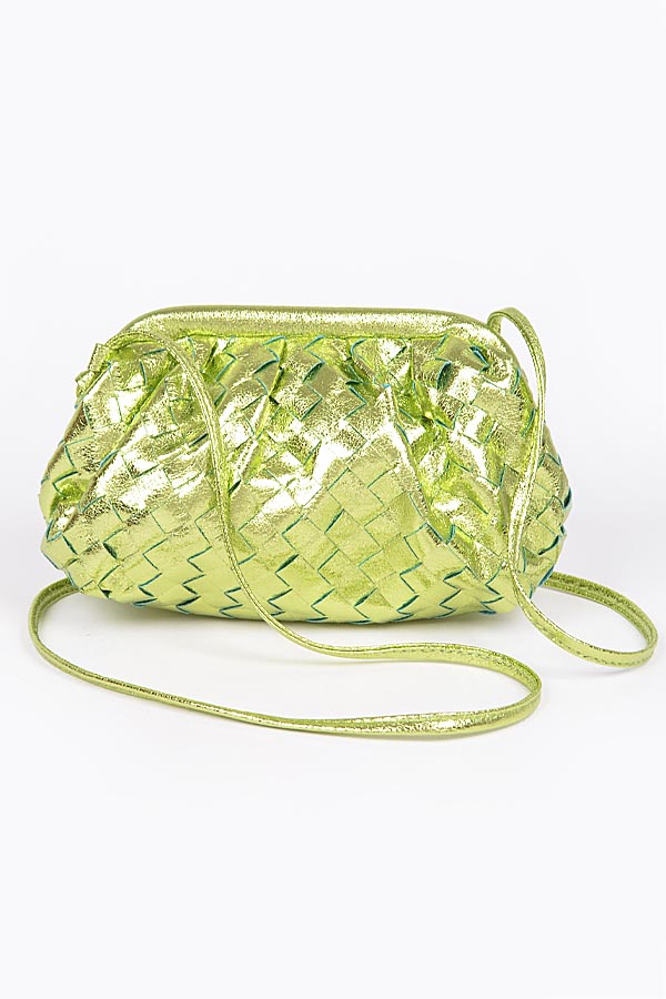 - * Metallic PU Braided Crossbody Bag