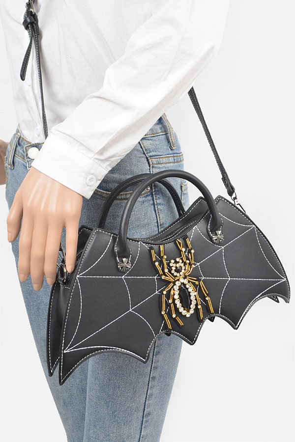 - * This is a Faux Leather Spider Top Handle Clutch from H&D Accessories. It features an eye - catching spider embellishment at the center, surrounded by a web - like design. The clutch comes with a top handle for easy carrying by hand and also a detachable shoulder strap, offering versatile ways to hold. It's perfect for Halloween parties. When you're dressed up in a spooky costume and heading to a Halloween bash, this clutch can complement your outfit wonderfully, adding a touch of eerie charm while providing enough space to carry your essentials like your phone, lipstick, and keys.