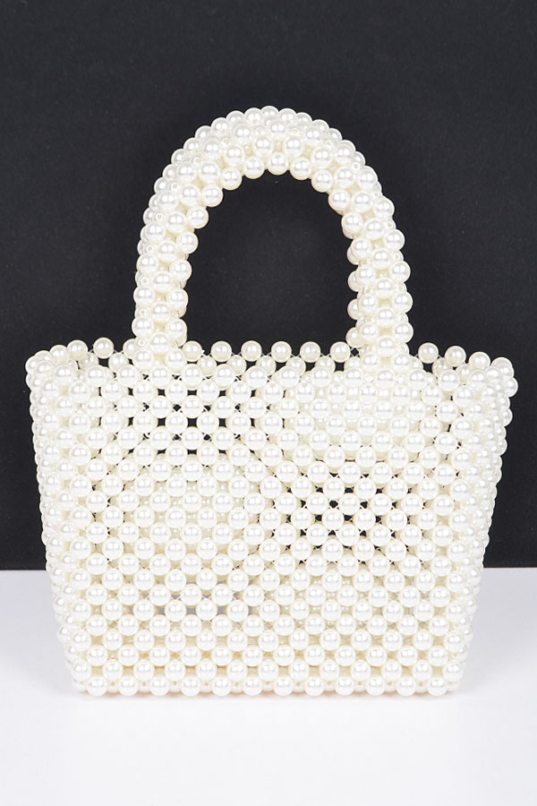 - * Hand Made Faux Pearl Bead Small Tote Bag