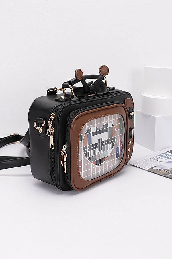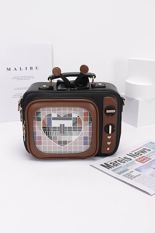 - * Introducing the Retro TV Chic Clutch by H&D Accessories-a stylish black and brown purse featuring a television design with a television image for a trendy look. the perfect blend of style and functionality for fashion-forward individuals like you!
