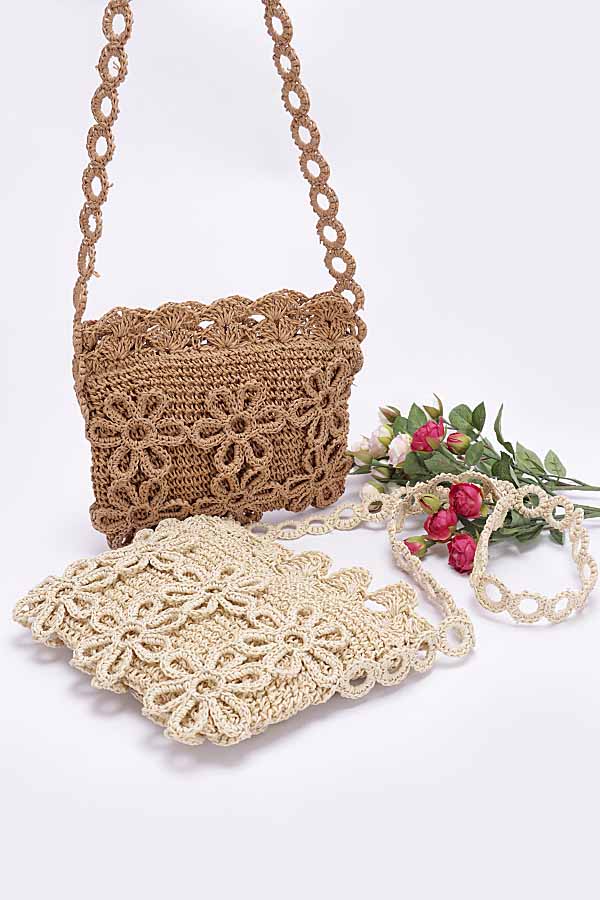 - * Introducing the "Faux Straw Woven Flower" Crossbody Bag by H&D Accessories! This exquisite Faux straw bag is meticulously crafted from a woven material, combining style and functionality in one stunning accessory. With its intricate design and durable construction, the Faux Straw Woven Chic clutch is the perfect companion for any occasion. Elevate your fashion game and make a statement with this must-have accessory from H&D Accessories. Get your hands on the Faux Straw Woven Chic clutch today and experience the epitome of elegance and sophistication.