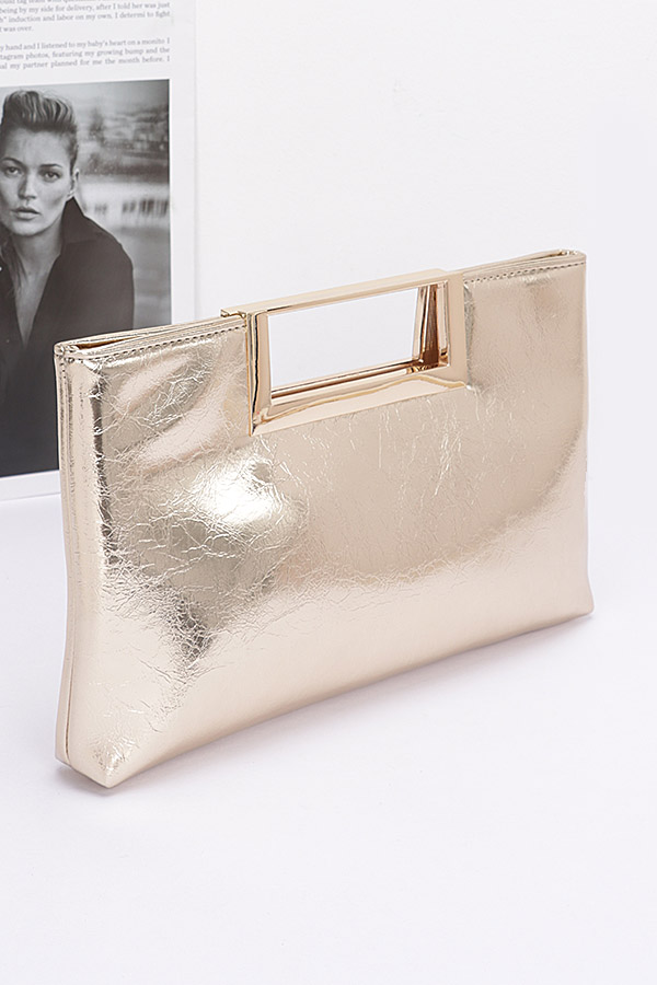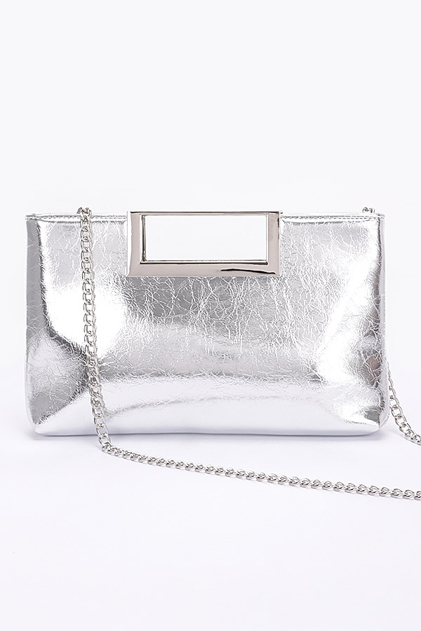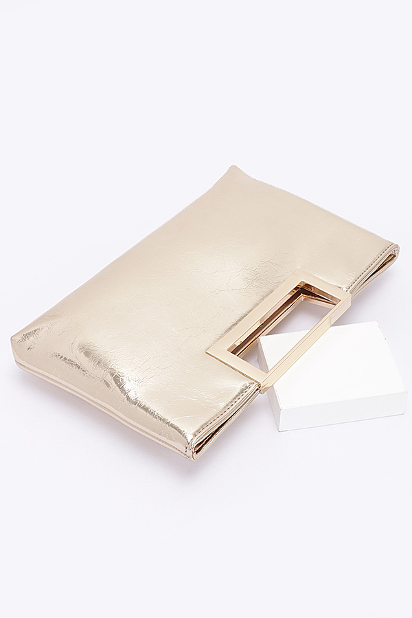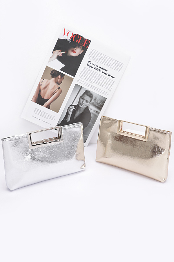 - * Discover the "Lustrous Luxe Clutch" – where sophistication meets contemporary design. Crafted from shiny metallic leather and featuring a sleek metal handle, this clutch is not just an accessory; it's a statement piece that elevates your outfit and showcases your unique style.