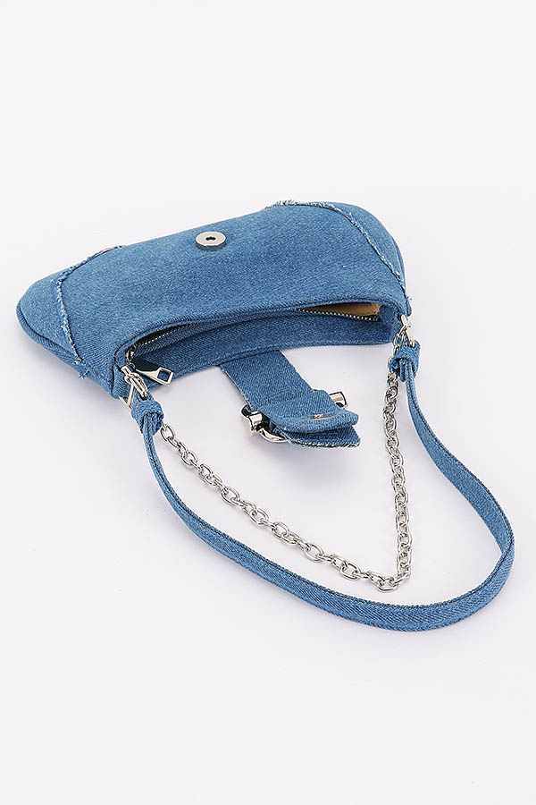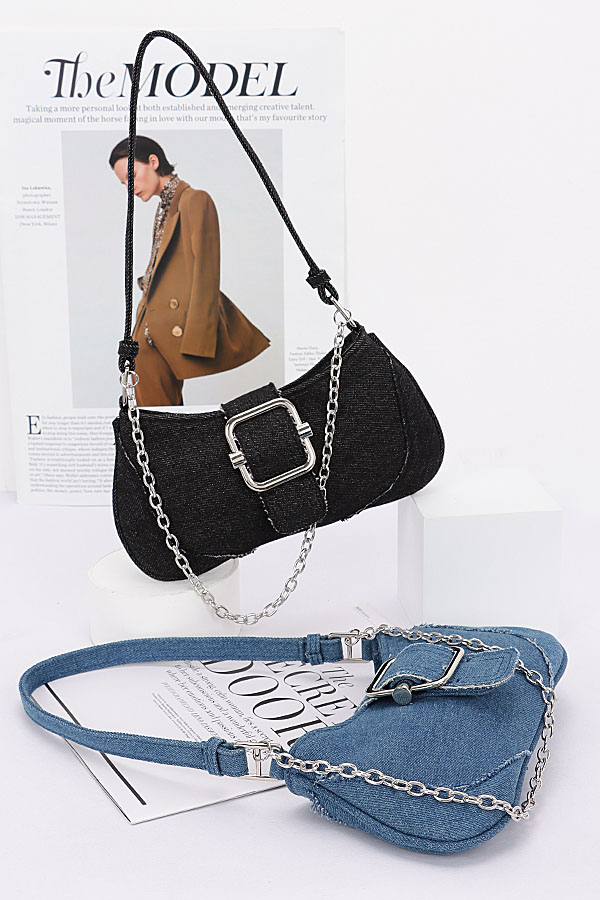 - * Introducing the "Denim Chic Chain Bag" – a perfect blend of style and functionality. This handbag features a trendy faux denim handle and a stylish chain, making it the ideal accessory for any outfit. Elevate your fashion game with this must-have piece from H&D Accessories.