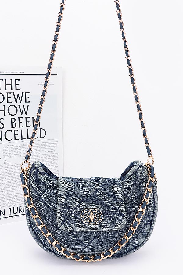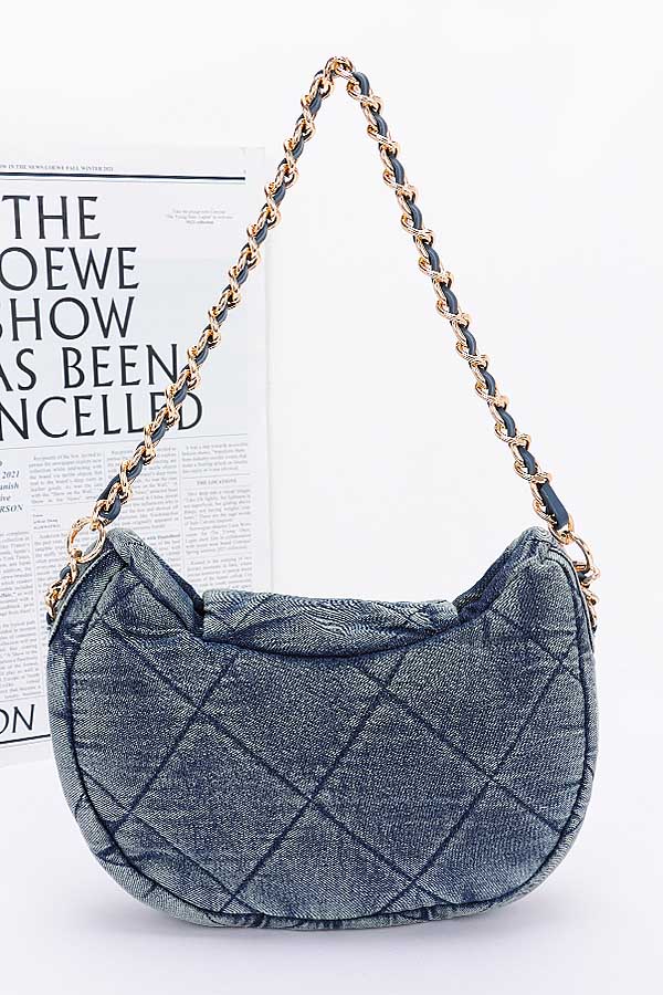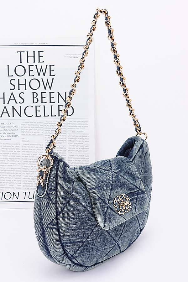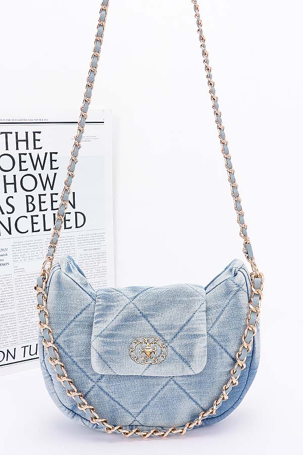 - * Introducing the "Quilted Washed Denim Crossbody Bag" – a perfect blend of style and functionality. This quilted washed denim bag features a chic chain strap that elevates any outfit, making it an essential accessory for the modern fashionista. Embrace versatility and sophistication with this stunning piece from H&D Accessories.