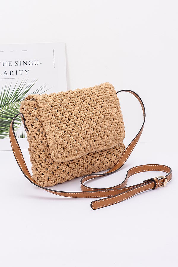 • * Introducing the "Braided Cotton Flap Crossbody Bag" – a stylish and functional accessory that perfectly blends fashion with practicality. Crafted from high-quality cotton braided, this bag is designed for those who appreciate unique textures and sustainable materials. Elevate your outfit and make a statement wherever you go with this must-have piece from H&D Accessories.