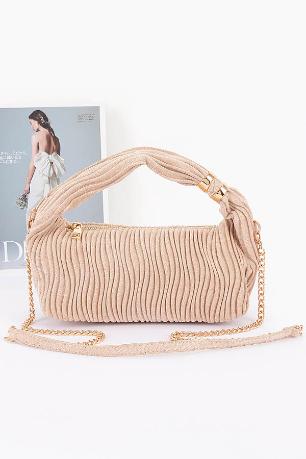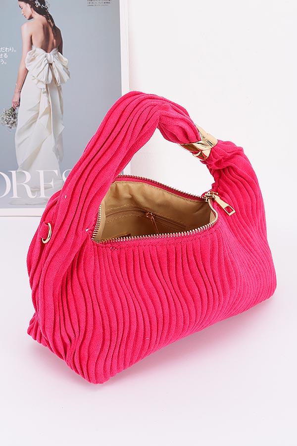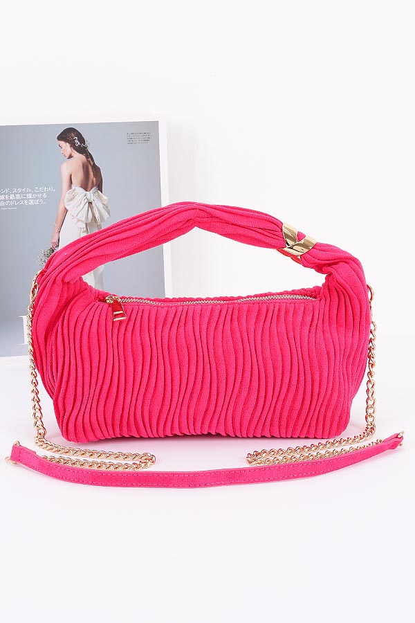 - * This Faux Suede Hobo Bag from H&D Accessories is a stylish and chic accessory. It features a pleated texture that adds a sense of depth and dimension to its design. The bag comes with a comfortable, twisted handle and a detachable gold - toned chain strap, offering versatile carrying options. The top - zippered closure ensures the security of your belongings. Ideal for those who appreciate a blend of fashion and functionality.
