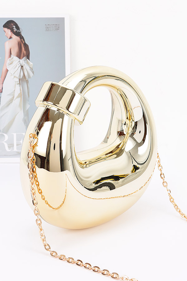 - * Introducing the "Gilded Chain Clutch" – a stunning blend of elegance and modernity. This metallic acrylic purse is not just an accessory; it's a statement piece that elevates any outfit. With its luxurious gold finish and chic chain detail, the Gilded Chain Clutch is perfect for those who want to shine at every occasion.