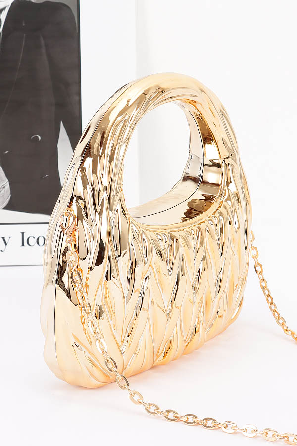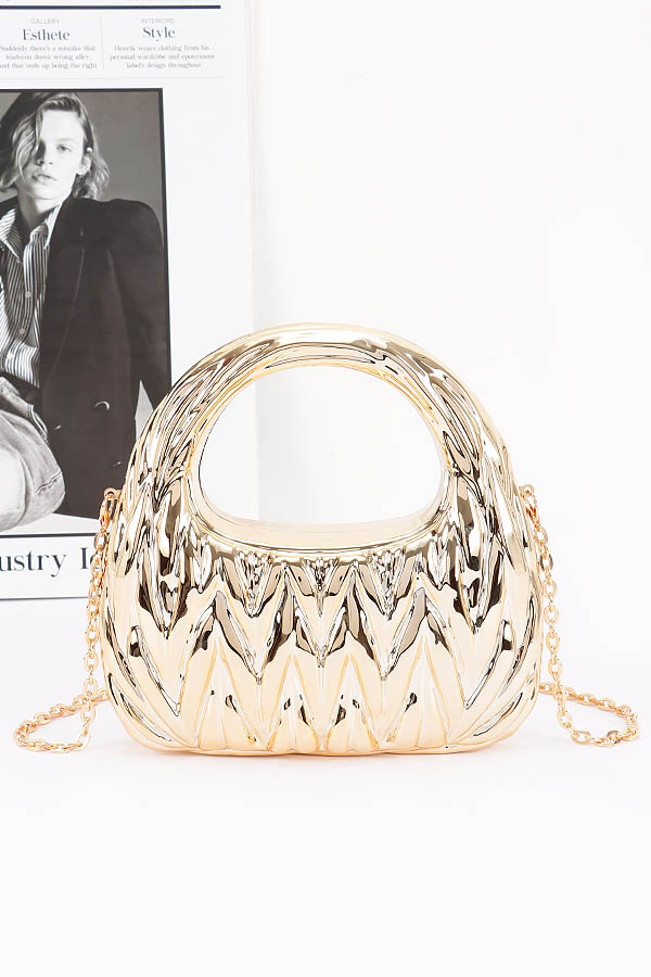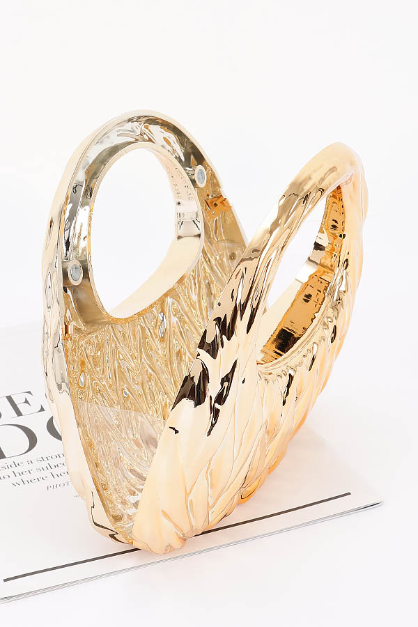 - * Introducing the "Metallic Acrylic Clutch" from H&D Accessories – a stunning bag that effortlessly combines elegance and modern style. With its chic chain strap and luxurious metallic finish, this clutch is perfect for any occasion, making you the center of attention wherever you go.