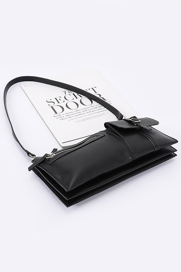 - * Introducing the "Faux Leather Zip Shoulder Bag" – a stylish black purse that combines elegance with functionality. This shoulder bag from H&D Accessories is designed for the modern woman who values both fashion and practicality. Elevate your accessory game with this must-have piece that effortlessly complements any outfit.
