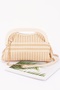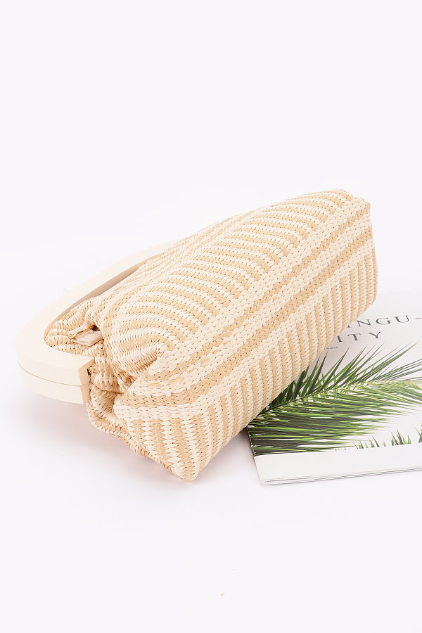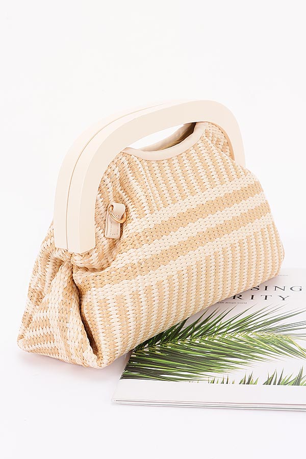 - * Introducing the "Coastal Chic Chain Bag" – a stunning beige and white striped purse that perfectly blends style and functionality. With its faux straw wood frame handle, this accessory is not just a bag; it's a statement piece that elevates any outfit. Embrace the elegance and versatility of this unique design, ideal for both casual outings and sophisticated events