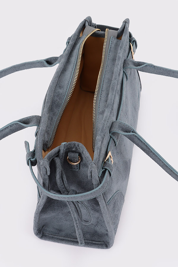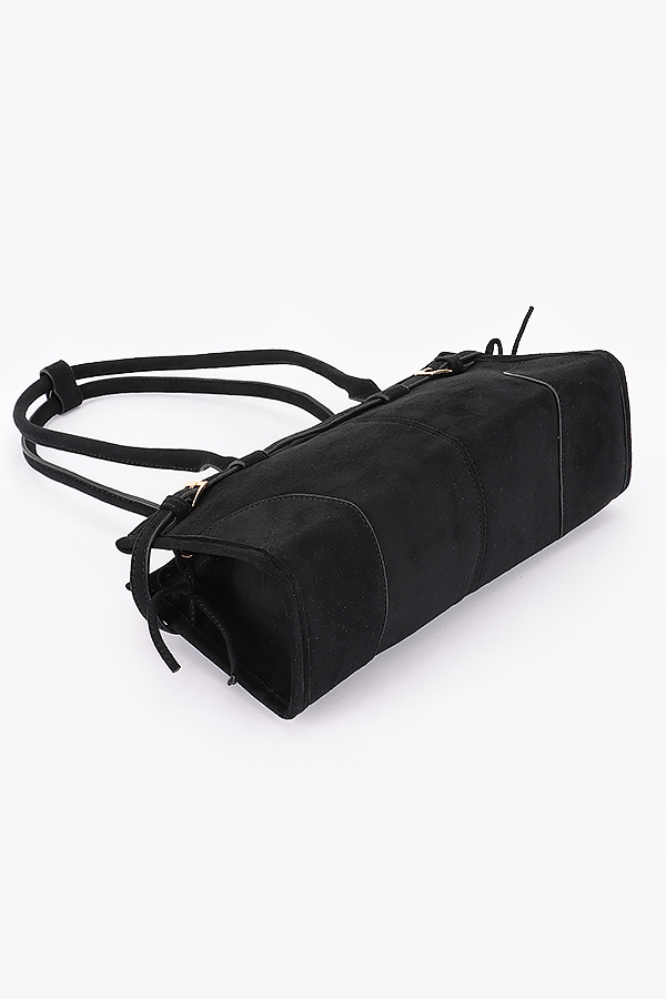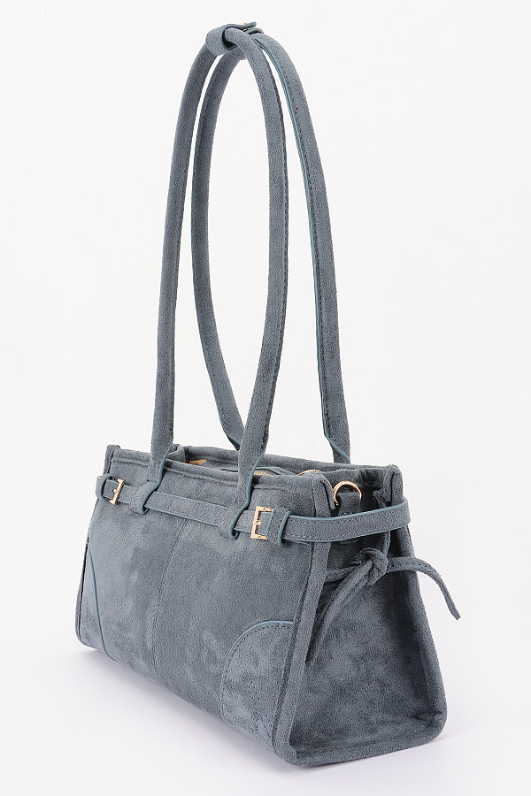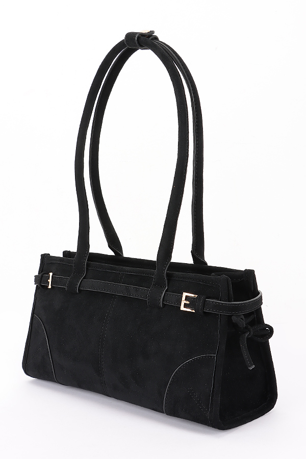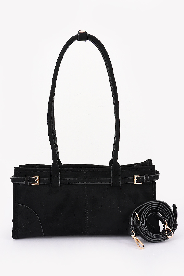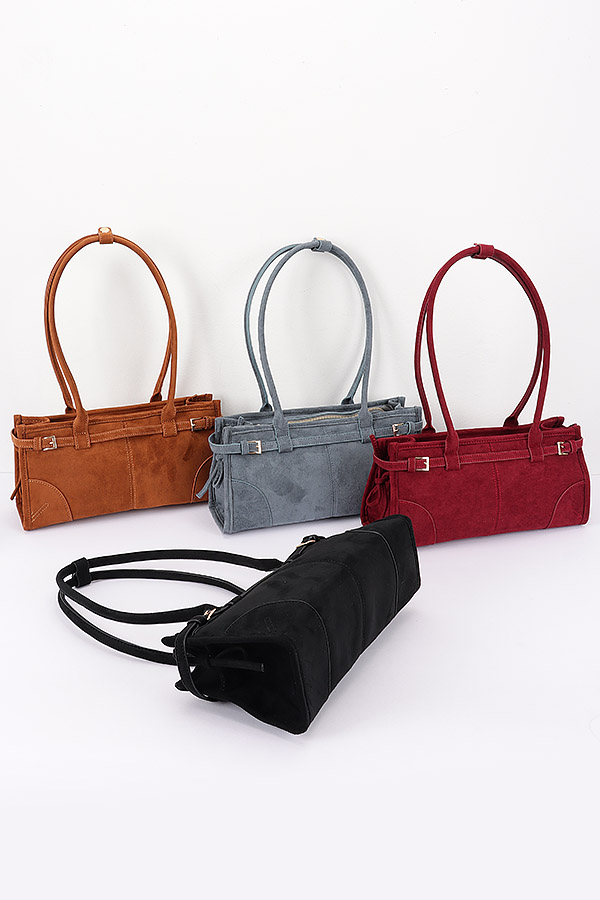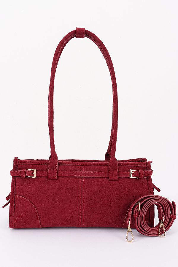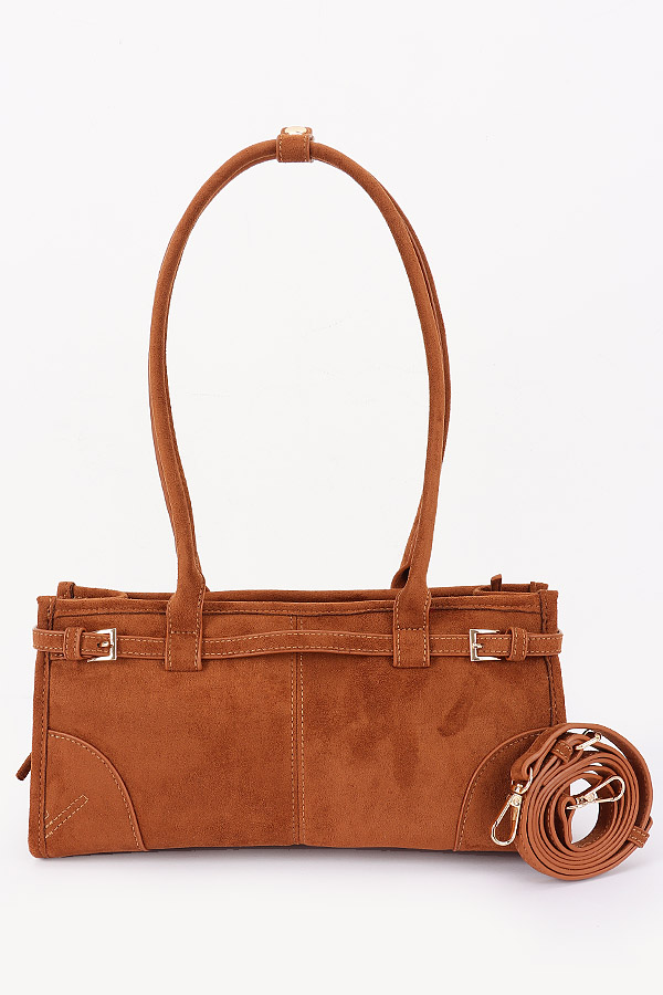 - * This Suede Shoulder Bag with Straps from H&D Accessories showcases a structured suede design. It includes top handles for hand - carry and a detachable shoulder strap for crossbody versatility. Metal buckles accent the front, adding subtle polish to its clean silhouette.