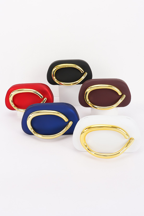- * This is a Metal Handle Satin Clutch from H&D Accessories. It has a sleek, rectangular shape, covered in smooth satin material. A large, curved metal handle adorns the front, adding a bold decorative element. Detachable gold - tone chain straps allow for versatile carrying, either as a clutch or a crossbody. Ideal for formal events like weddings, galas, or evening parties, it pairs well with elegant dresses to elevate the overall look.