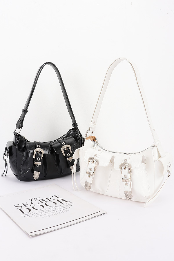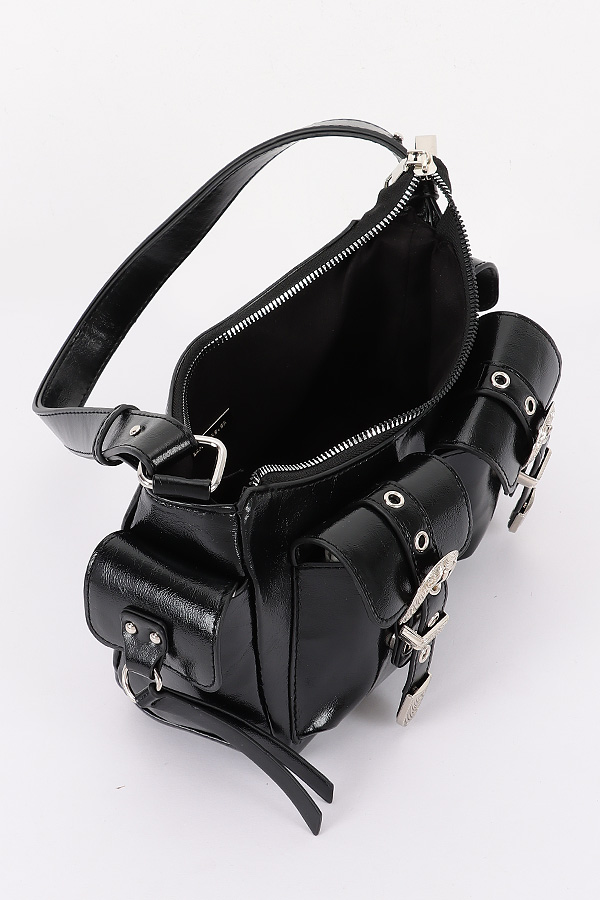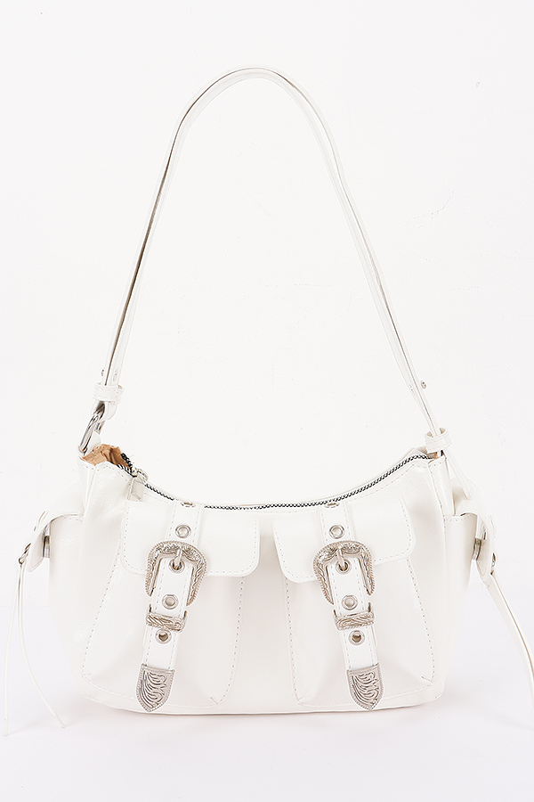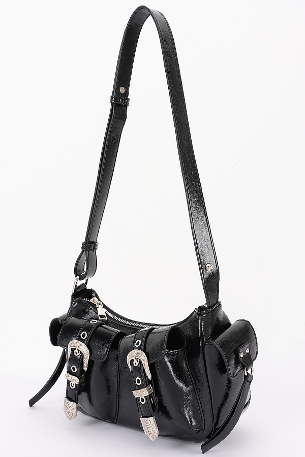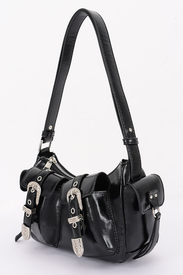 - * This Faux Leather Metal Buckle Shoulder Bag from H&D Accessories features a stylish design with metal buckles and a sleek shoulder strap. It has a chic and trendy appearance, giving it a sophisticated and fashionable vibe.