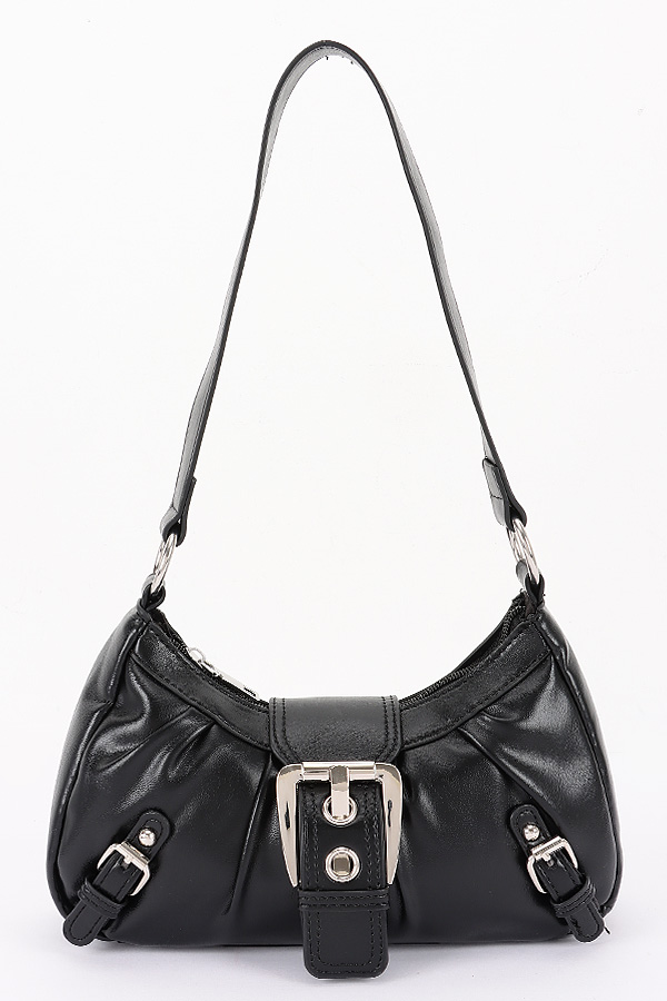 - * Faux Leather Metal Buckle Shoulder Bag
