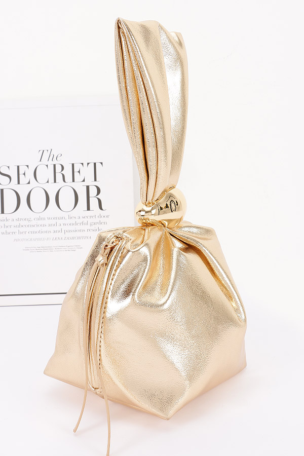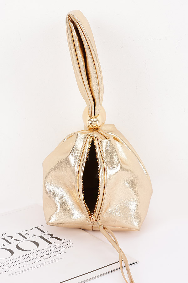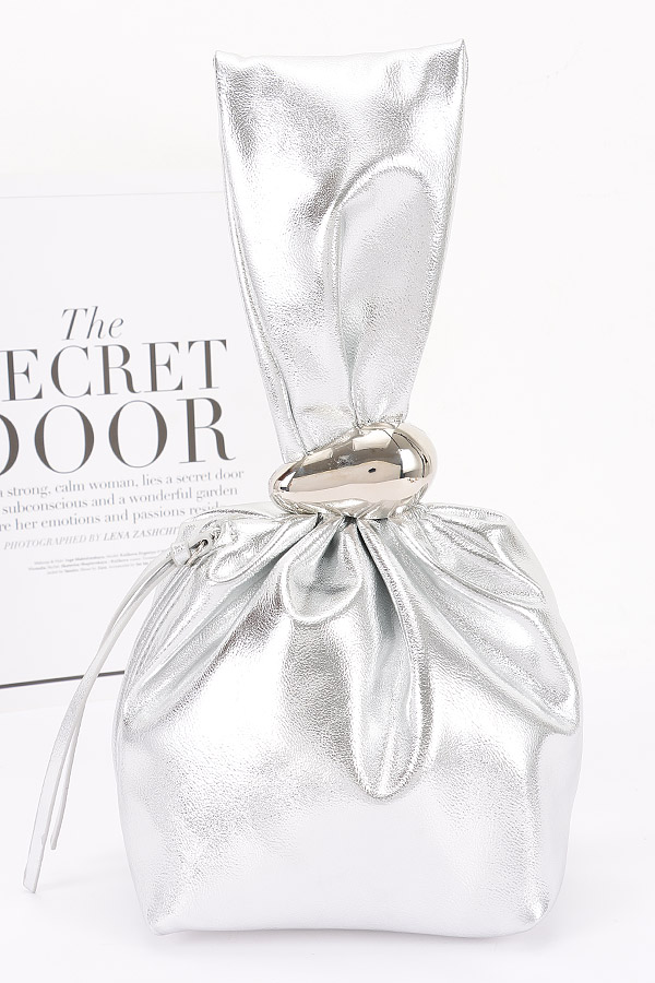 - * This Faux Leather Wrist Bag from H&D Accessories features a unique design with a gathered structure and a prominent decorative element. It has an elegant and avant - garde appearance, giving it a sophisticated and stylish vibe.