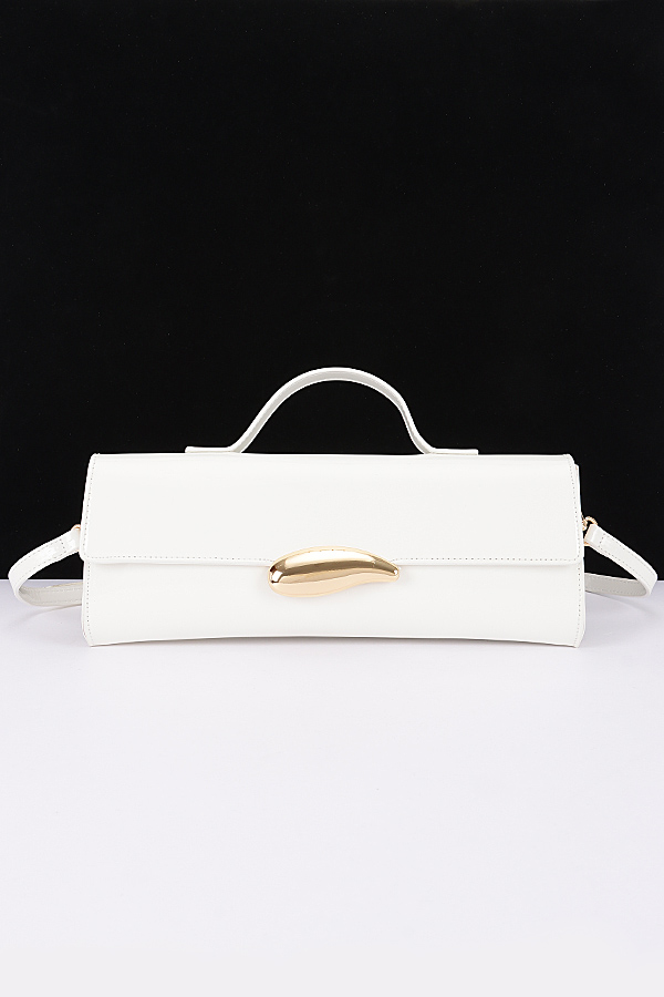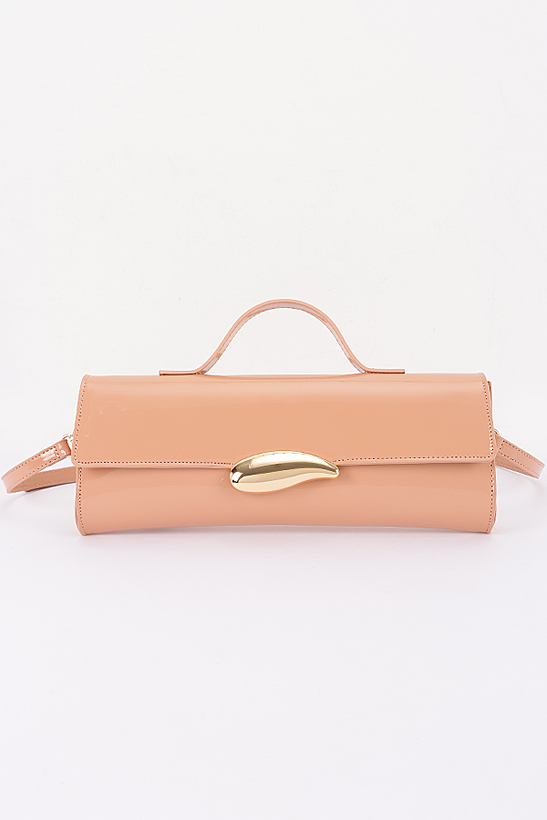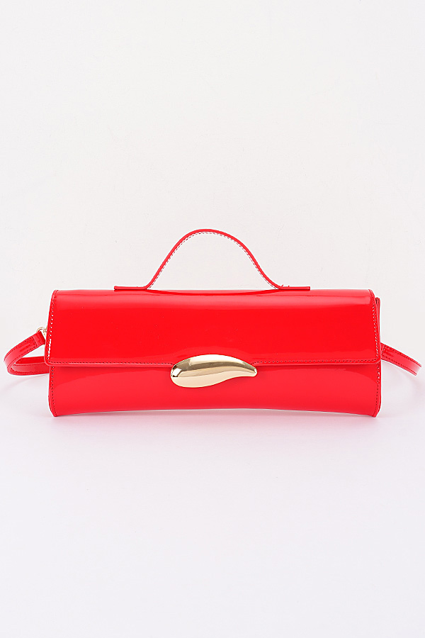 • * This Enamel Faux Leather Clutch from H&D Accessories features a sleek design with an enamel - like faux leather finish and a distinctive metallic clasp. It comes with both a top handle and an adjustable shoulder strap, offering versatile carrying options.