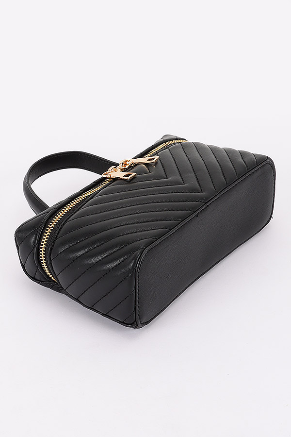 • * Quilted Vegan Leather Vanity Case Bag