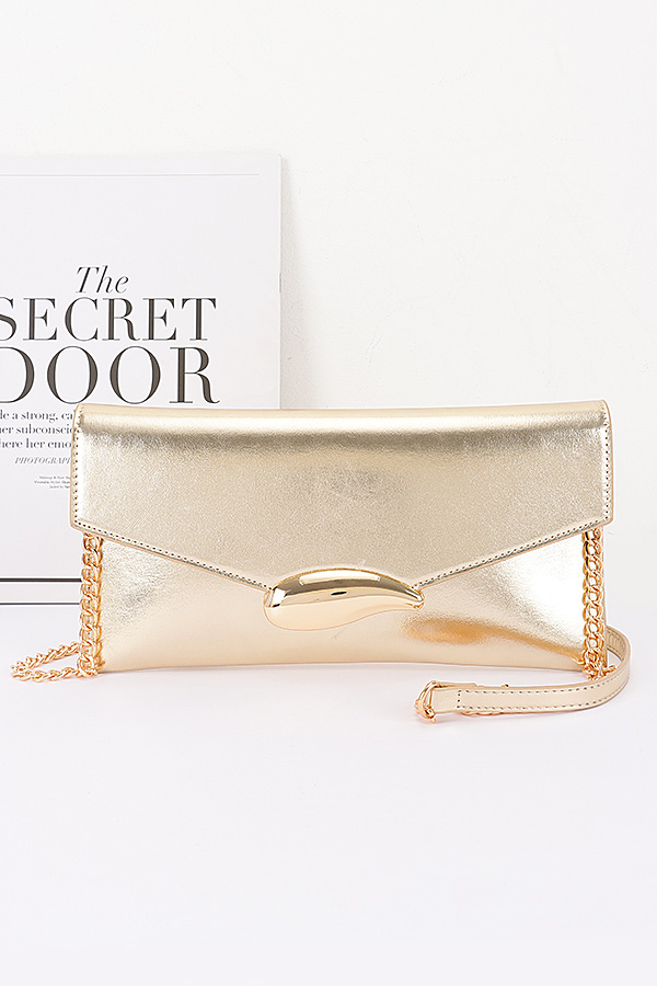- * This Vegan Leather Envelope Clutch Bag from H&D Accessories features an envelope - shaped design with a distinctive metal clasp and a chain strap. It has an elegant and modern appearance, giving it a sophisticated and stylish vibe.