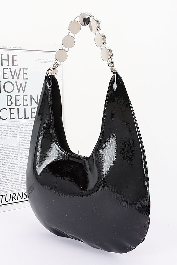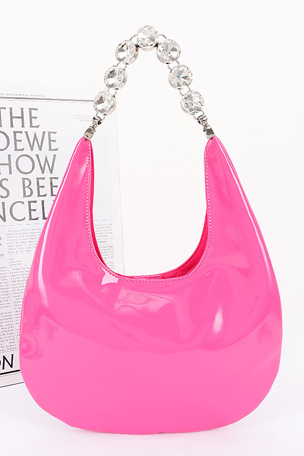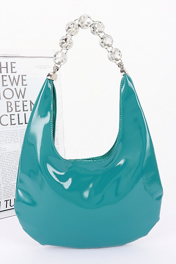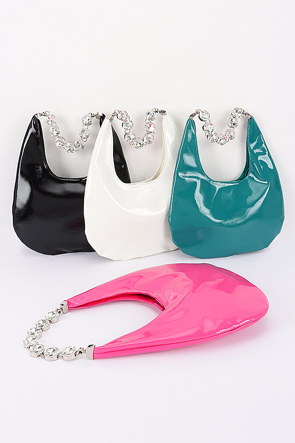 - * Patent Leather Rhinestone Handle Shoulder Bag