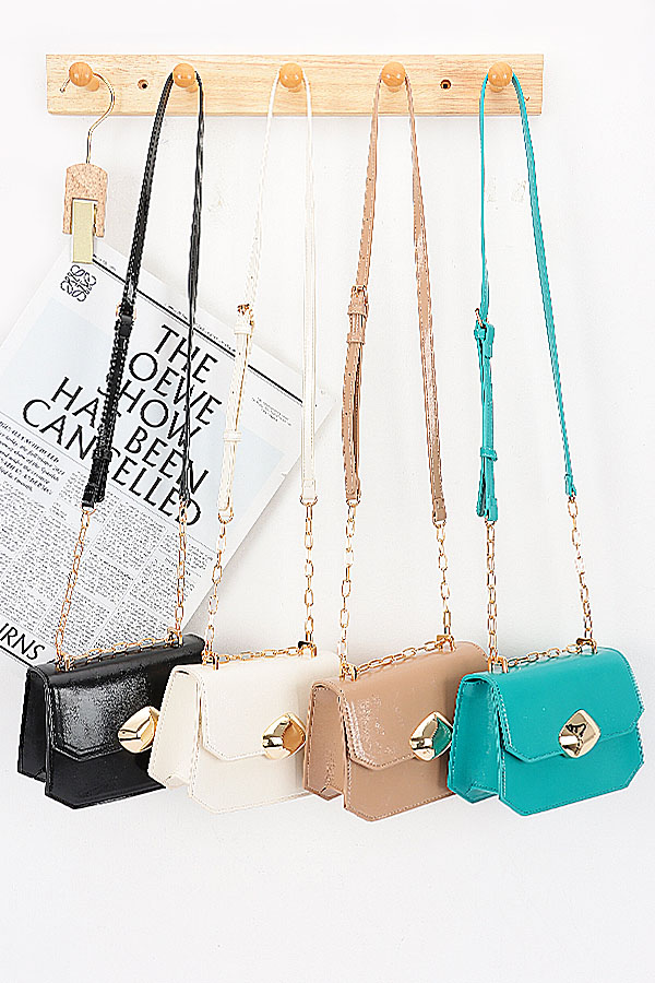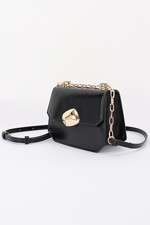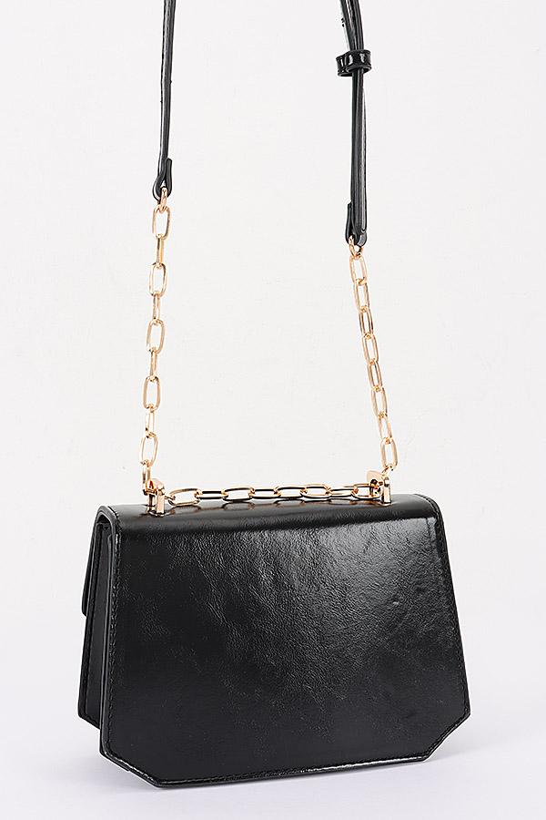- * This Vegan Leather Crossbody Bag from H&D Accessories features a compact flap design made of sleek vegan leather, paired with a mixed-style shoulder strap (combining a solid strap segment and a chain segment) and a distinctive metallic clasp (that doubles as decoration and closure). It has a modern, streamlined appearance, exuding a trendy and versatile vibe that suits diverse daily styling needs.Daily Commutes: Ideal for carrying small essentials (like a mini phone, keys, or cards) during work trips or daily errands, serving as a practical and stylish companion.
