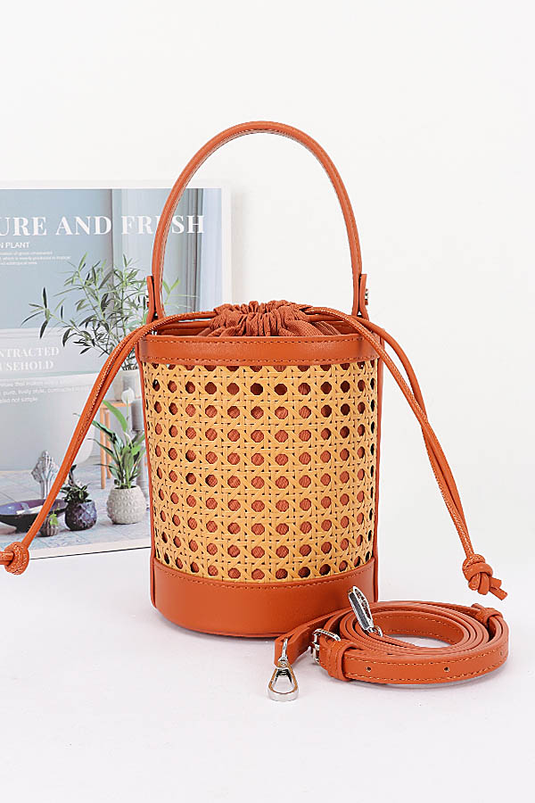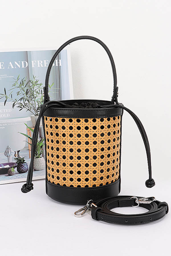 • * This Braided Bamboo Tube Bag from H&D Accessories features a handwoven braided bamboo exterior with a perforated, lattice-like pattern, framed by smooth trim and finished with a structured top handle, a drawstring closure, and a detachable crossbody strap for versatile styling. Perfect for a weekend picnic, a day trip to the farmers’ market, or a casual brunch with friends, it can be carried by the handle for a charming, handheld look or worn crossbody using the adjustable strap for hands-free convenience, offering a compact yet roomy cylindrical interior to hold your sunscreen, wallet, and small essentials while adding a fresh, artisanal touch to any warm-weather outfit.