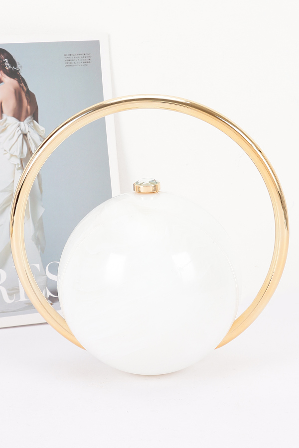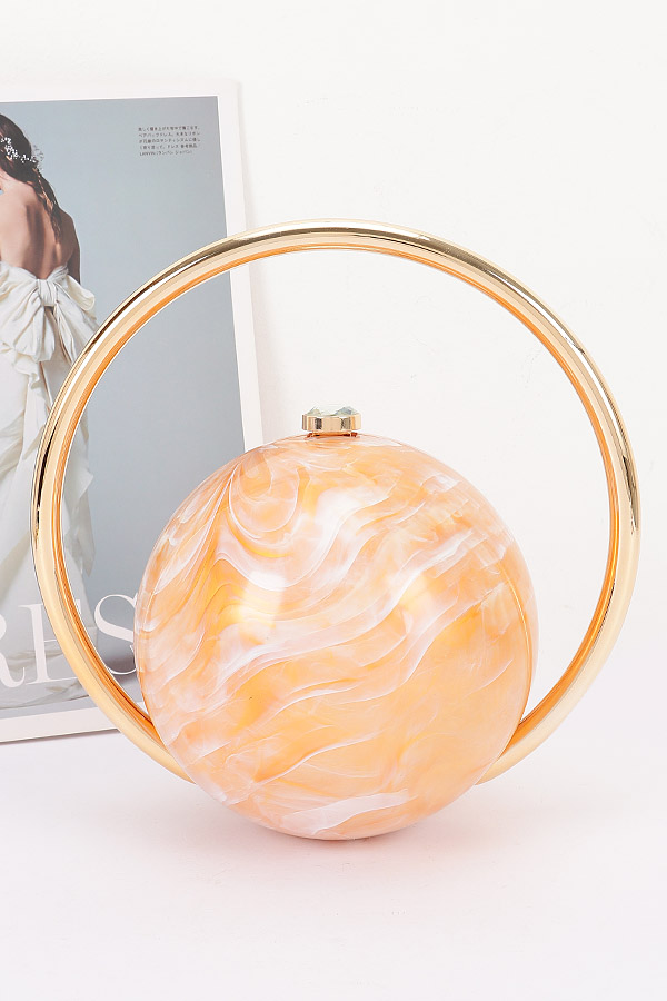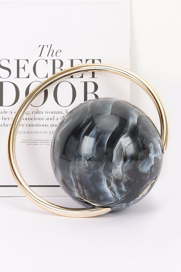 - * This Acrylic Marble Ball Clutch from H&D Accessories features a spherical acrylic body with a marble pattern, plus a large circular handle. It has an artistic, eye-catching appearance, giving off a luxurious and distinctive vibe.Ideal for pairing with evening gowns at galas, weddings, or red-carpet-style gatherings, serving as a standout statement piece.