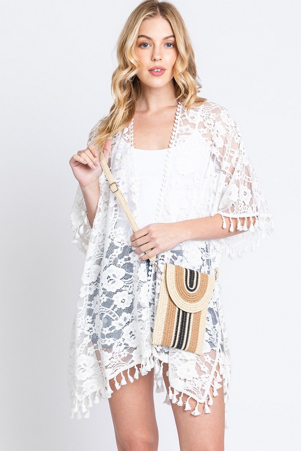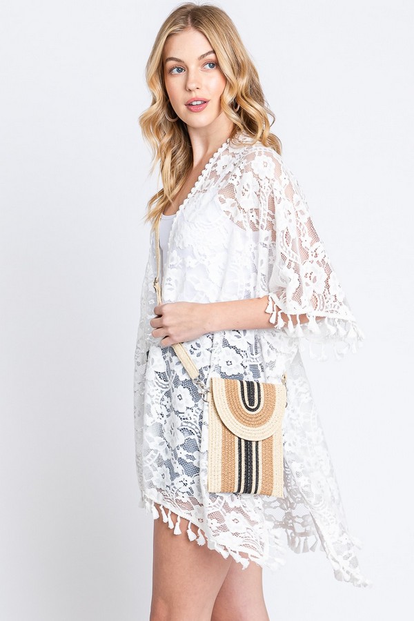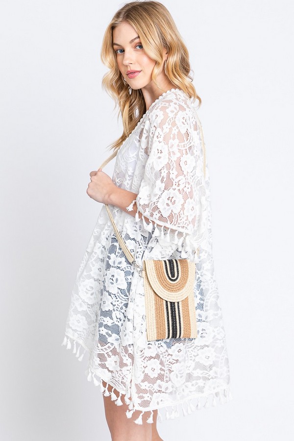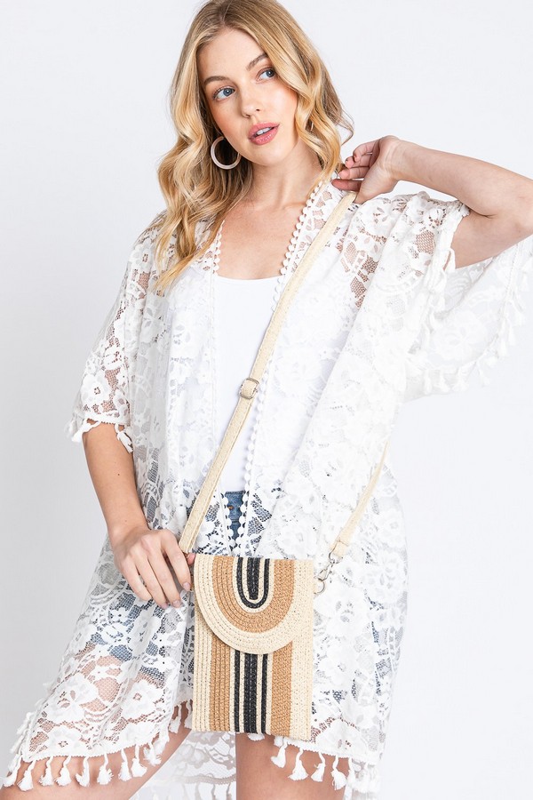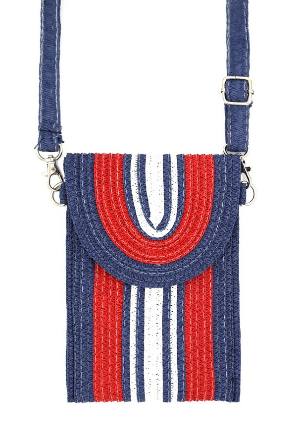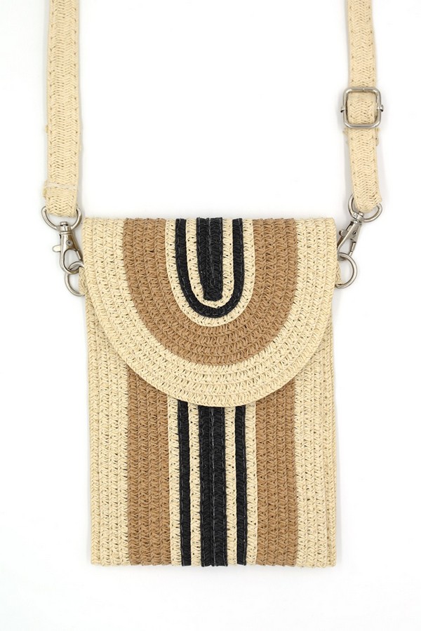 - * STRIPED PATTERN STRAW CELLPHONE CROSSBODY BAG
