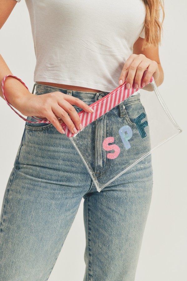 - * SEQUIN LETTER SPF CLEAR POUCH WITH WRIST STRAP