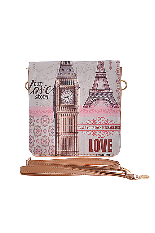 • * Love Story Crossbody Handbag * 9W*10H*2D * Polyurethane, mixed metal