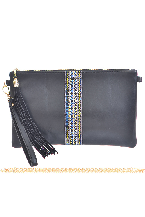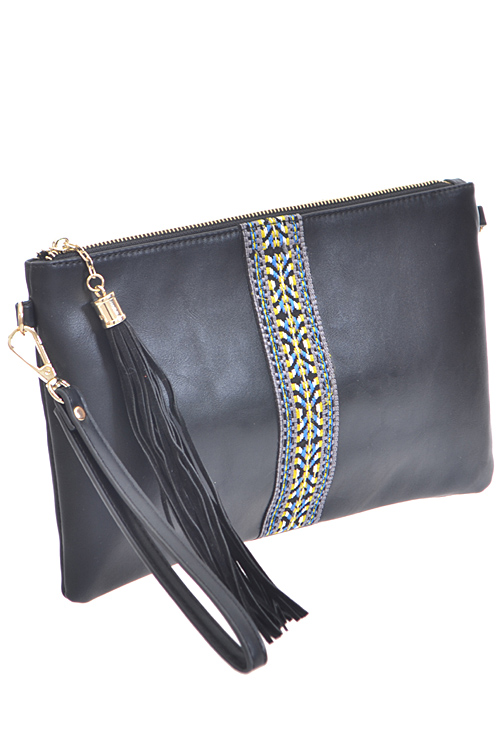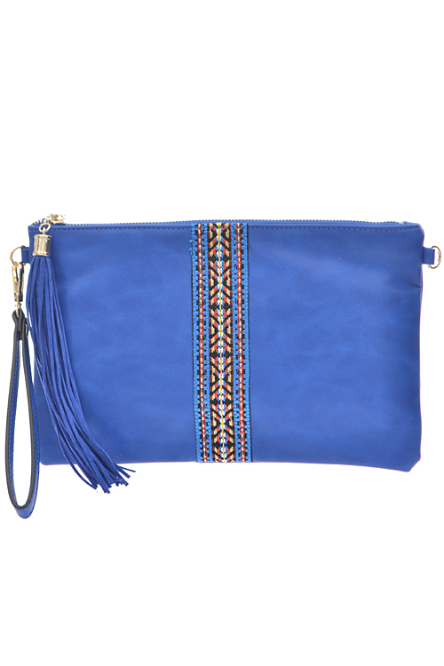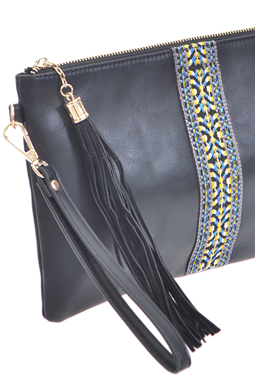 • * Aztec Print Strap Lined Tassel Zipper Clutch * 12W*8H* * Polyurethane, mixed metal