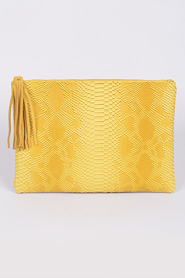 • * Snake Reptile Skin Detailed Fringe Zipper Clutch