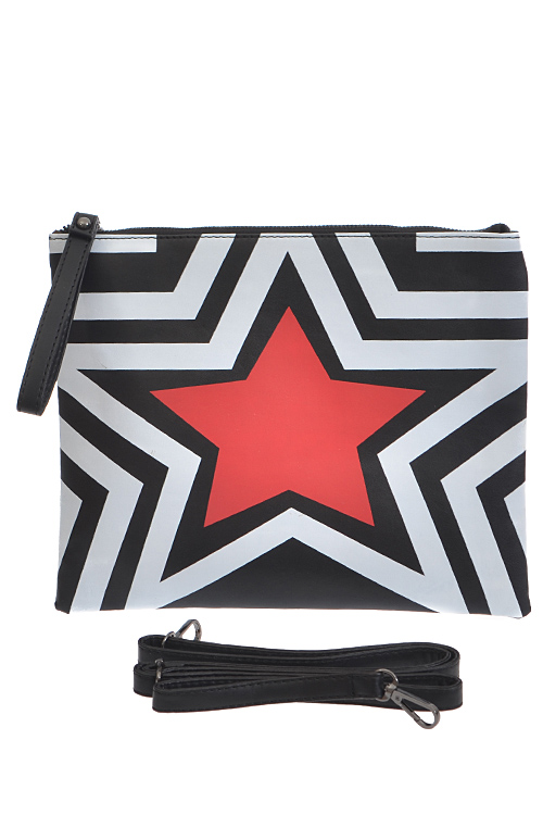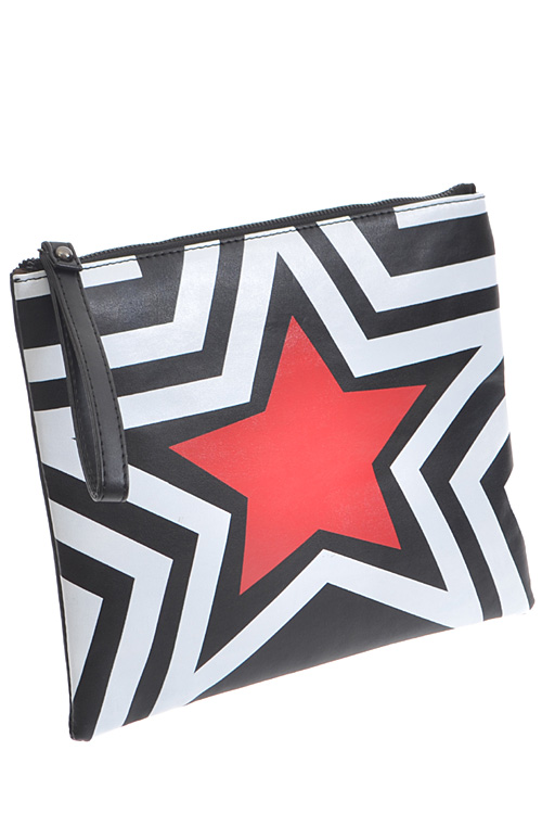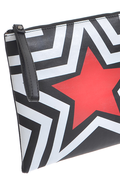 - * Star Pointed Zipper Clutch * 12W*9.5H * Polyurethane, mixed metal