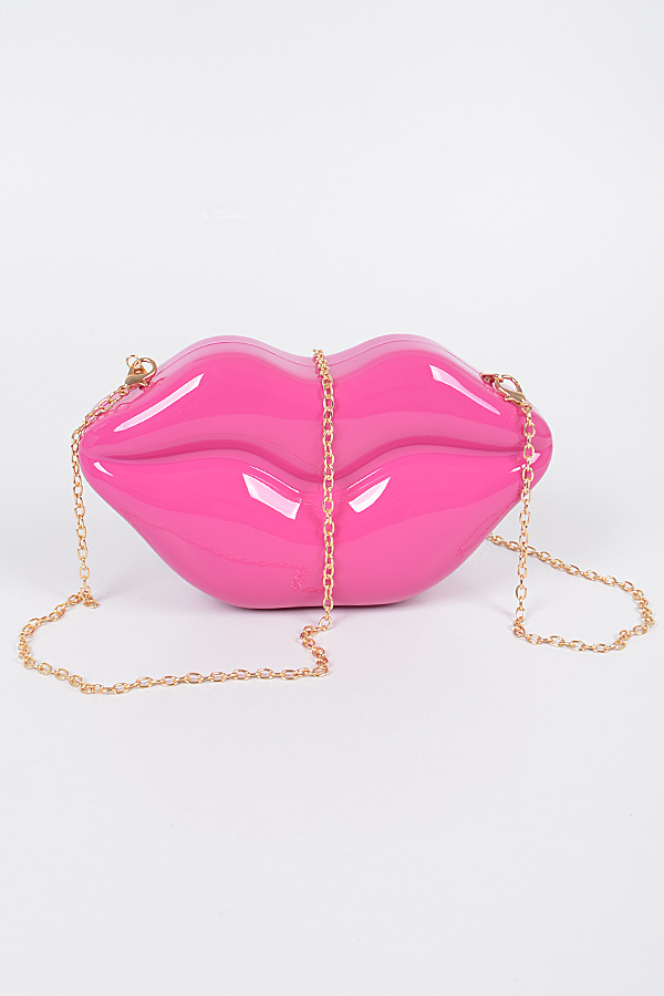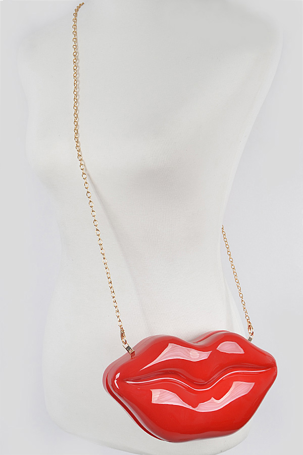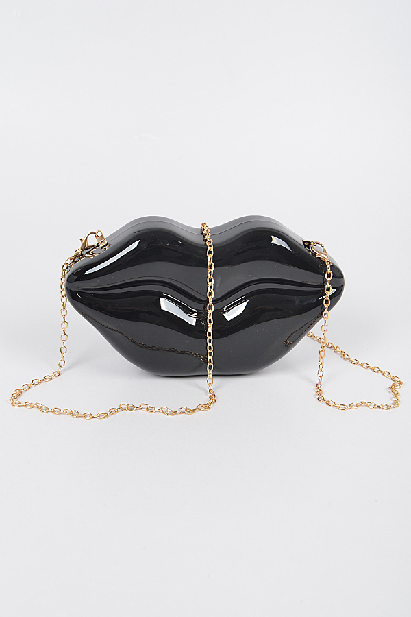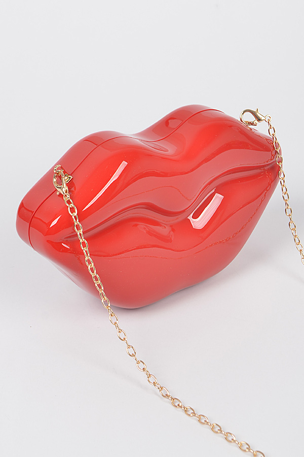 - * Lips Detachable Hand Bag Clutch With Chain Attachment.