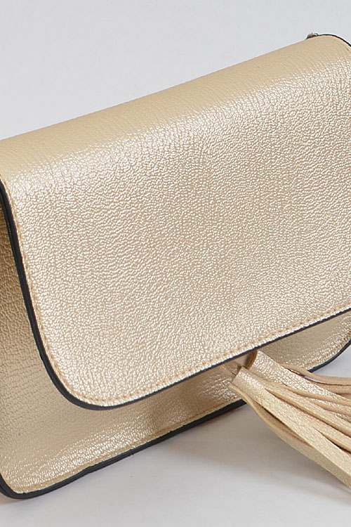 - * Simple Day To Day Plain Clutch With Tassels * 8.5W*5.25H*2D * Polyurethane, mixed metal
