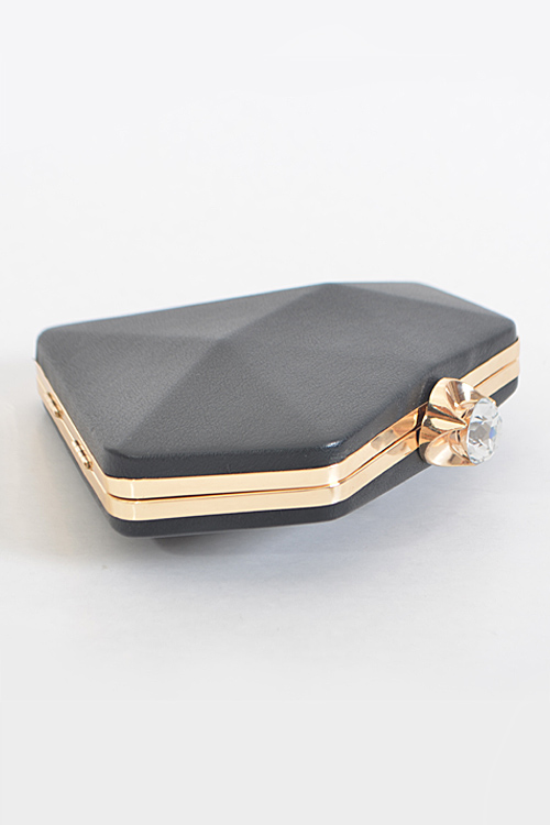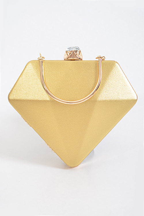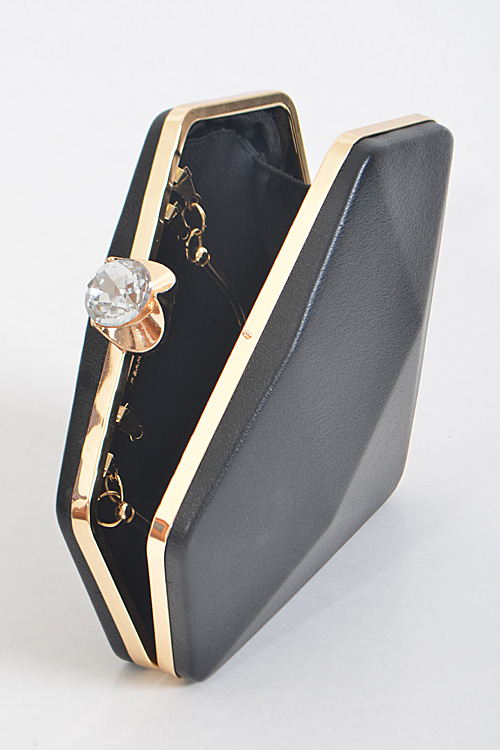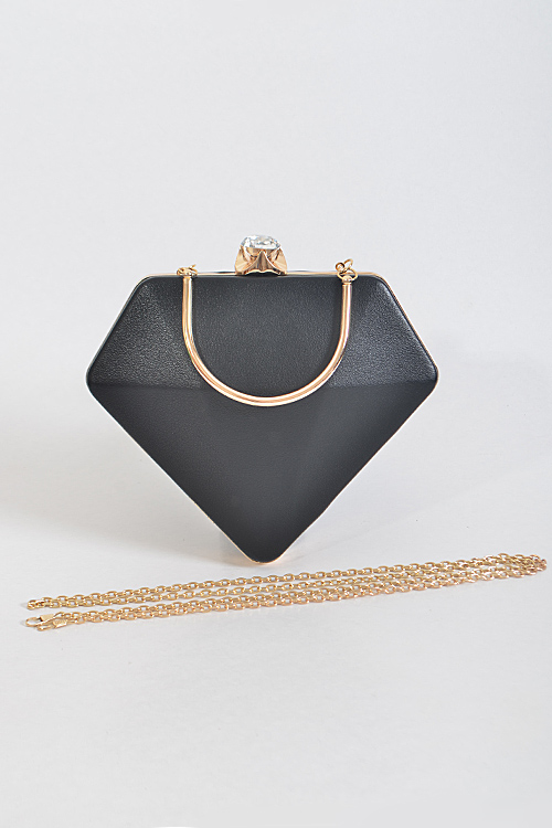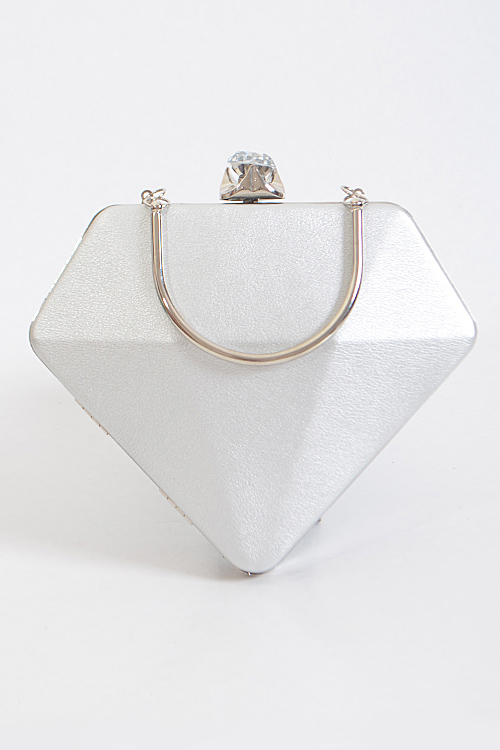 • * Intriguing Diamond Inspired Side Clutch * 9W*7.25H*1.25D * Polyurethane, mixed metal