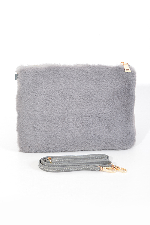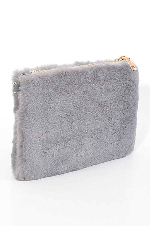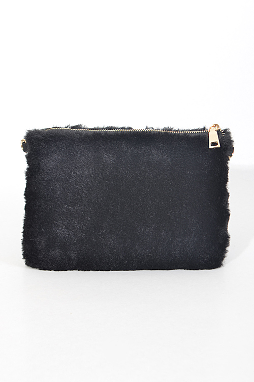 - * Faux Fur Fluffy Side Clutch * 10W*6.75H*1D * Polyurethane,Faux Fur