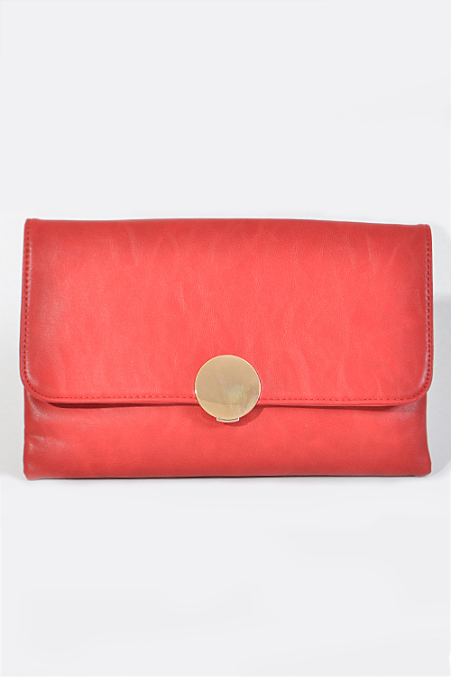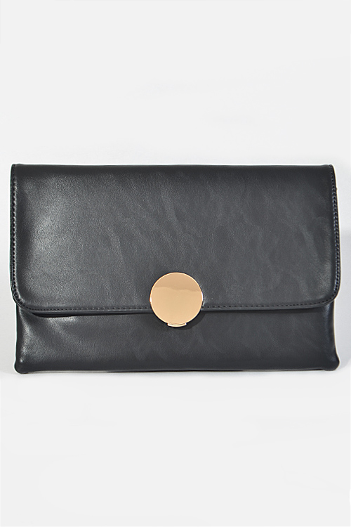 - * Simple Smooth Clutch With Circle * 12.5W*8H * Polyurethane, mixed metal