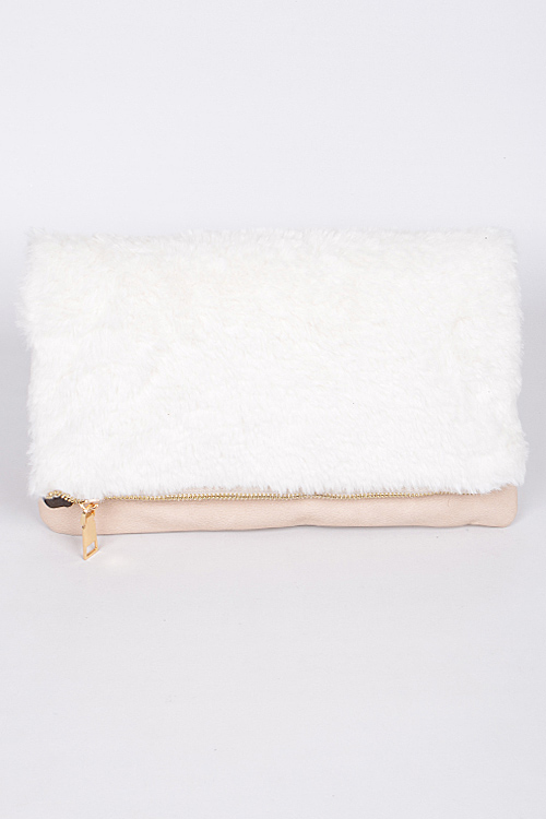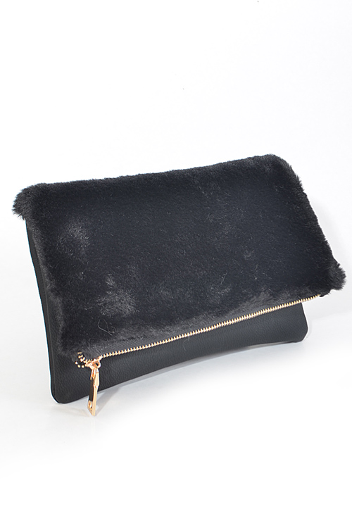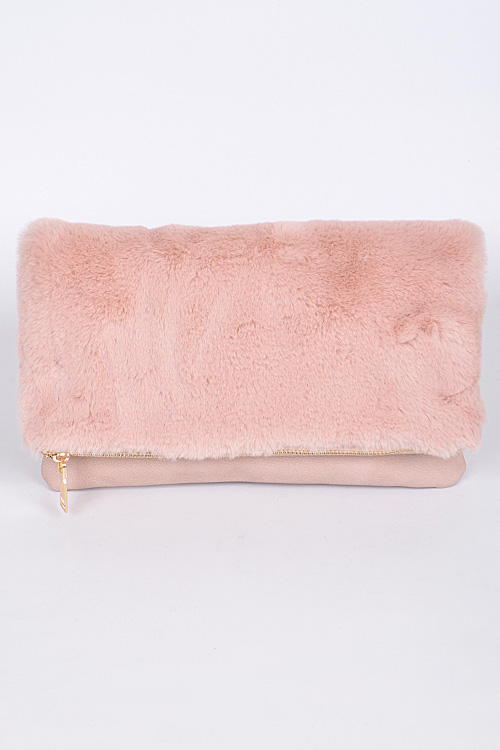 • * FLUFFY FOLDABLE HAND CLUTCH