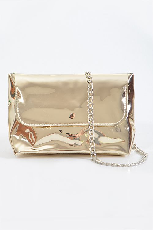 • * Shiny Golden Formal Side Clutch * 8.75W*5.25H*4D * Polyurethane