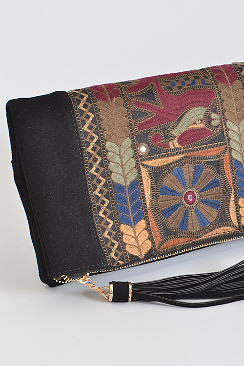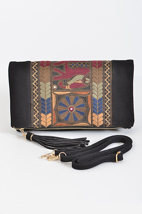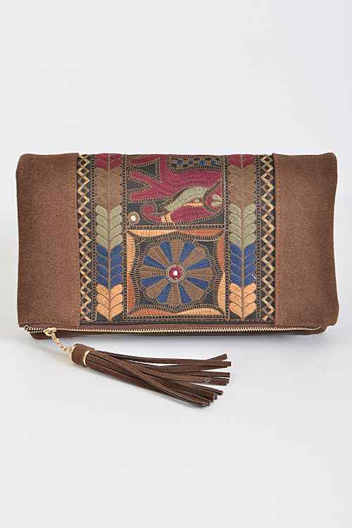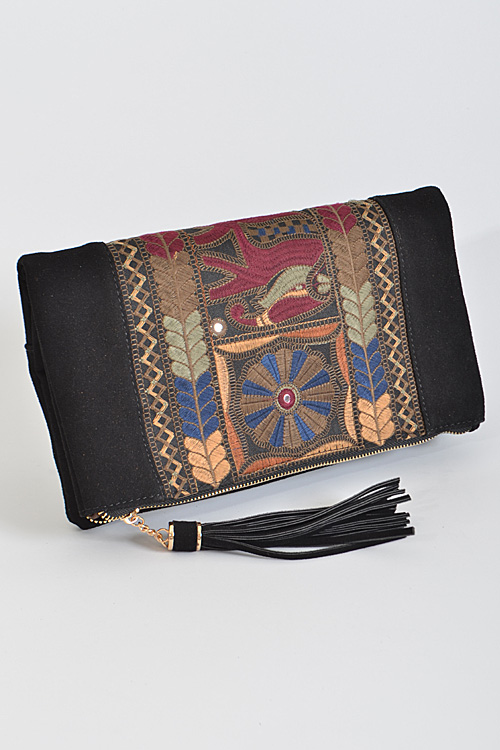- * Aztec Inspired Patterned Clutch * 12.5W*7H*0.5D * Polyurethane,Mixed Metal