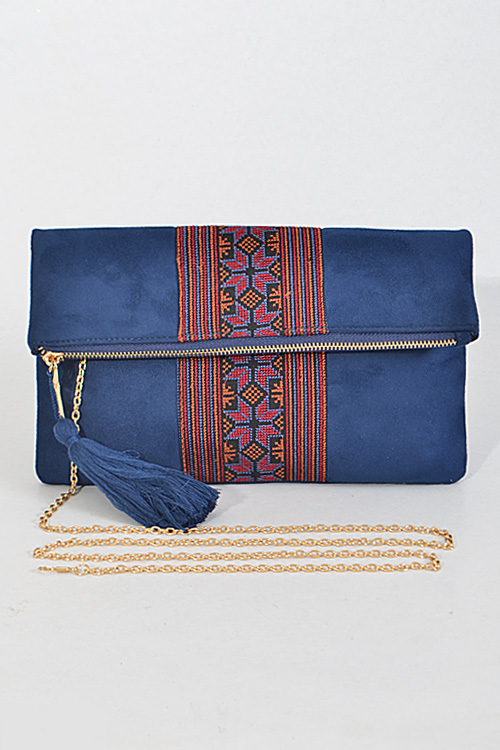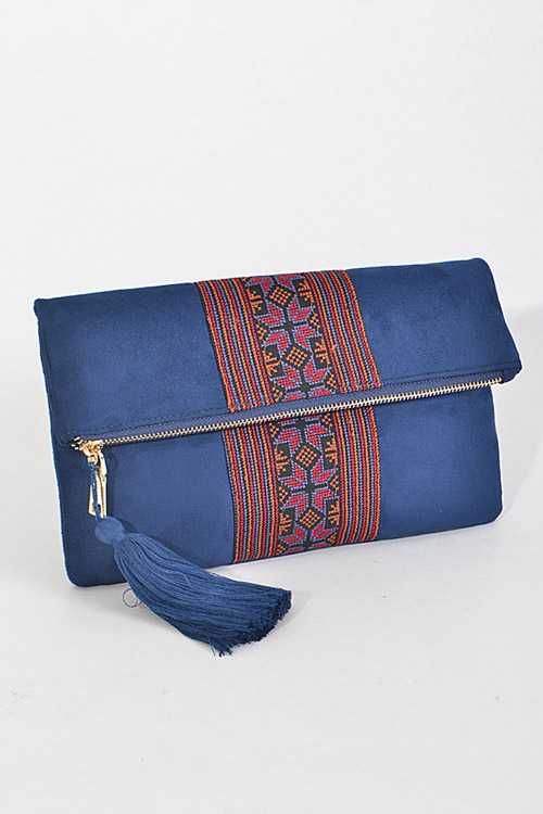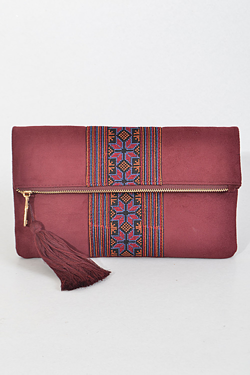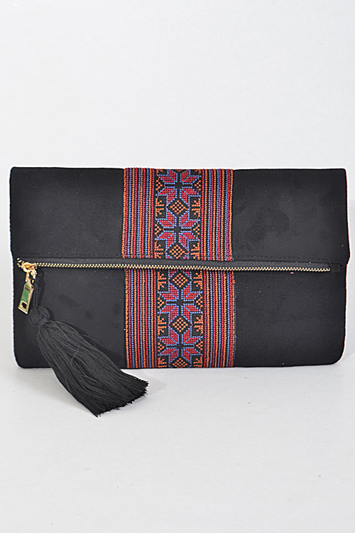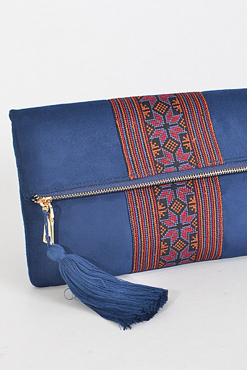 - * Royal Solid Intricate Patterned Tassel Clutch * 12W*7H * Polyurethane, mixed metal
