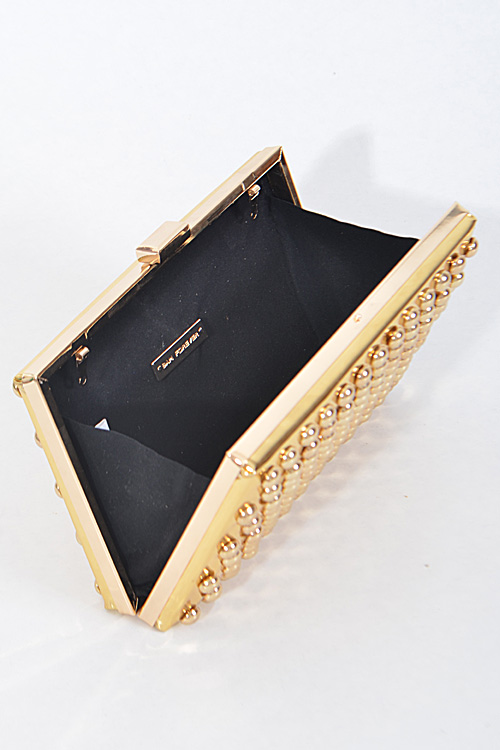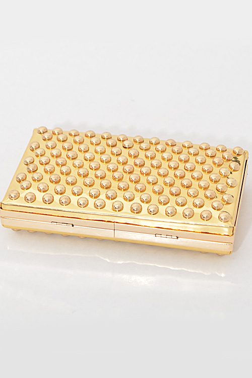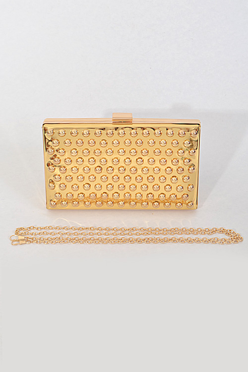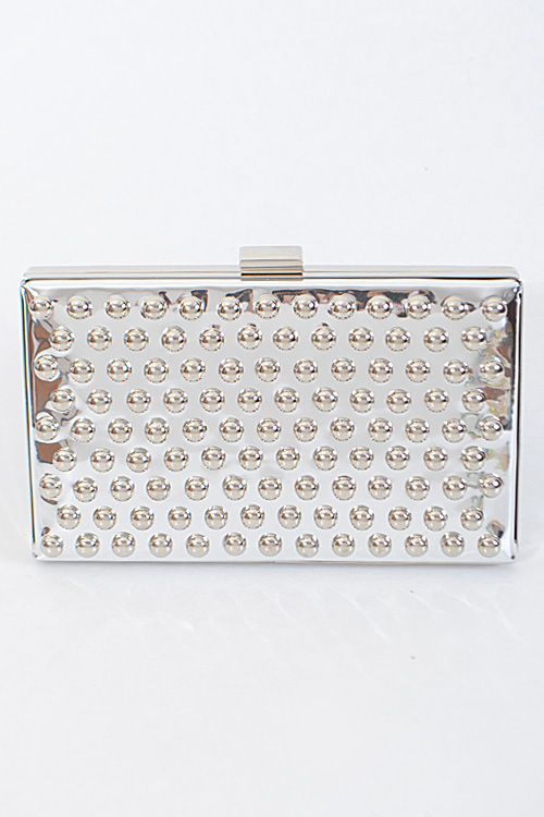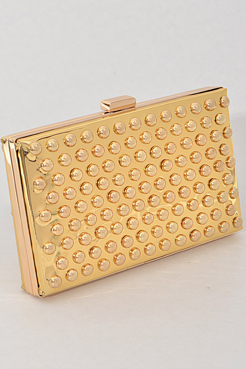 • * Shiny Rectangle Studded Clutch * 8W*4.75H*1D * Polyurethane,Mixed Metal