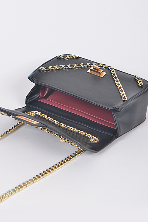 • * Formal Clutch With Gold Chain Details * 8.5W*5H*2.75D * Polyurethane, mixed metal