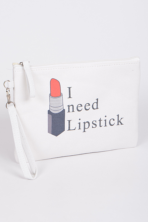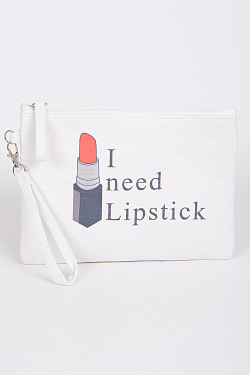 - * I need Lipstick Girly Clutch * 9.25W*7H * Cotton