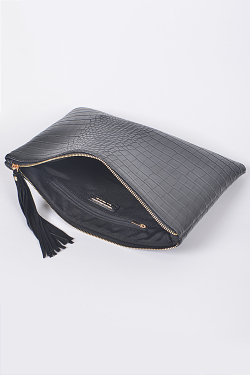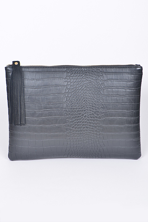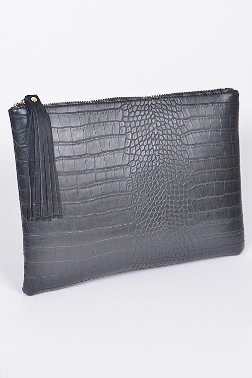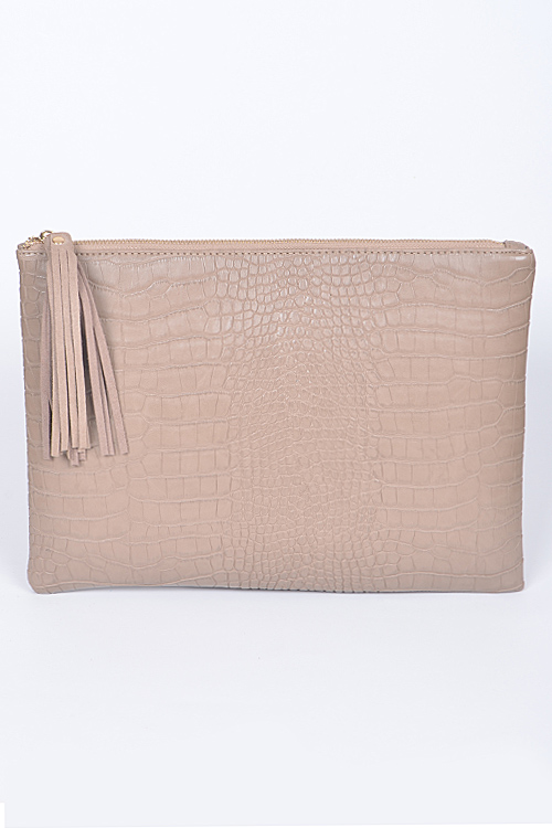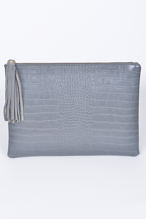 • * Small Faux Reptile Skin Clutch * 13.5W*9.5H * Polyurethane,Mixed Metal