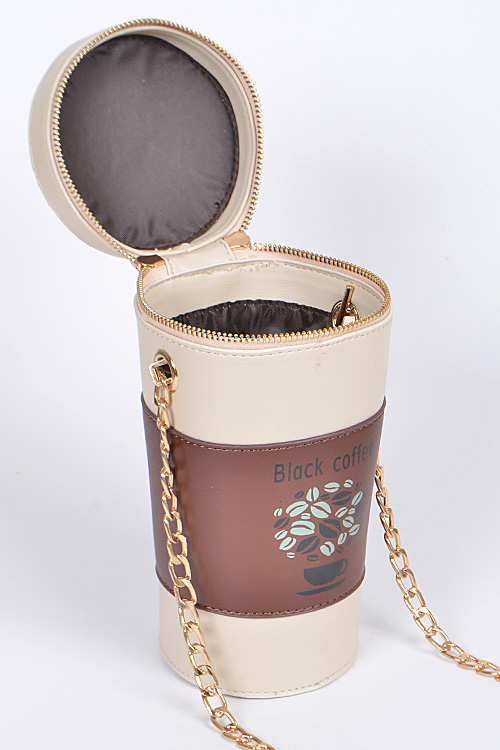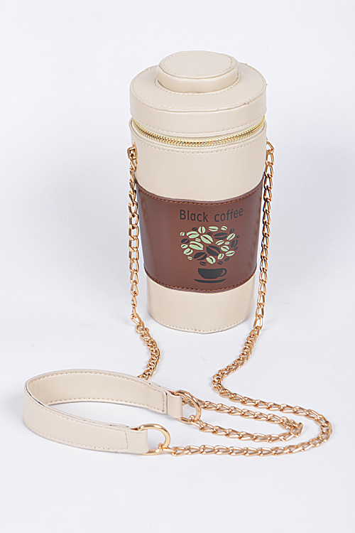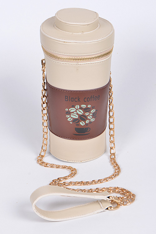 • * Black Coffee Lovers Clutch * 4.25W*4.25H*9D * Polyurethane, mixed metal