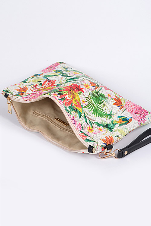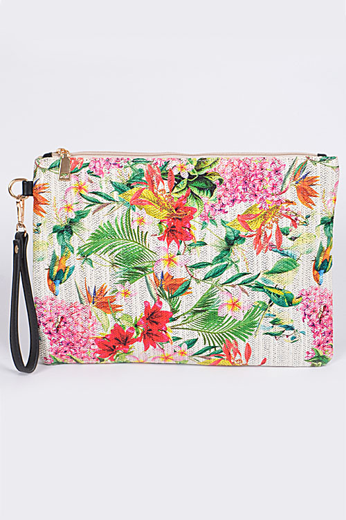 - * Nature Inspired Colorful Clutch * 13.25W*9.25H * Polyurethane, mixed metal
